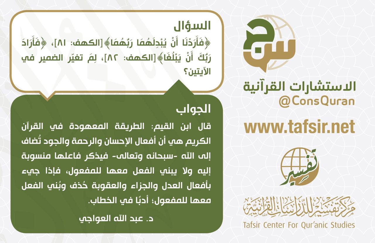 السؤال/ ﴿فَأَرَدْنَا أَن يُبْدِلَهُمَا رَبُّهُمَا﴾ ، ﴿فَأَرَادَ رَبُّكَ أَن يَبْلُغَا﴾؛ لِمَ تغيّر الضمير في الآيتين؟