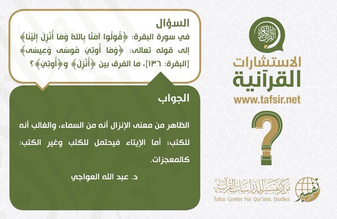السؤال/ في سورة البقرة: ﴿قُولُوا آمَنَّا بِاللَّهِ وَمَا أُنزِلَ إِلَيْنَا وَمَا أُنزِلَ إِلَى إِبْرَاهِيمَ وَإِسْمَاعِيلَ وَإِسْحَاقَ وَيَعْقُوبَ وَالْأَسْبَاطِ وَمَا أُوتِيَ مُوسَى وَعِيسَى﴾، ما الف... المزيد