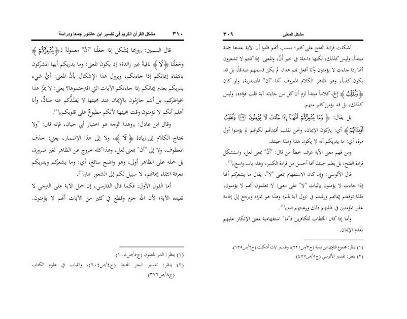 س/ ﴿وَأَقْسَمُوا بِاللَّهِ جَهْدَ أَيْمَانِهِمْ لَئِن جَاءَتْهُمْ آيَةٌ لَّيُؤْمِنُنَّ بِهَا قُلْ إِنَّمَا الْآيَاتُ عِندَ اللَّهِ وَمَا يُشْعِرُكُمْ أَنَّهَا إِذَا جَاءَتْ لَا يُؤْمِنُونَ﴾: (وما يشعر... المزيد