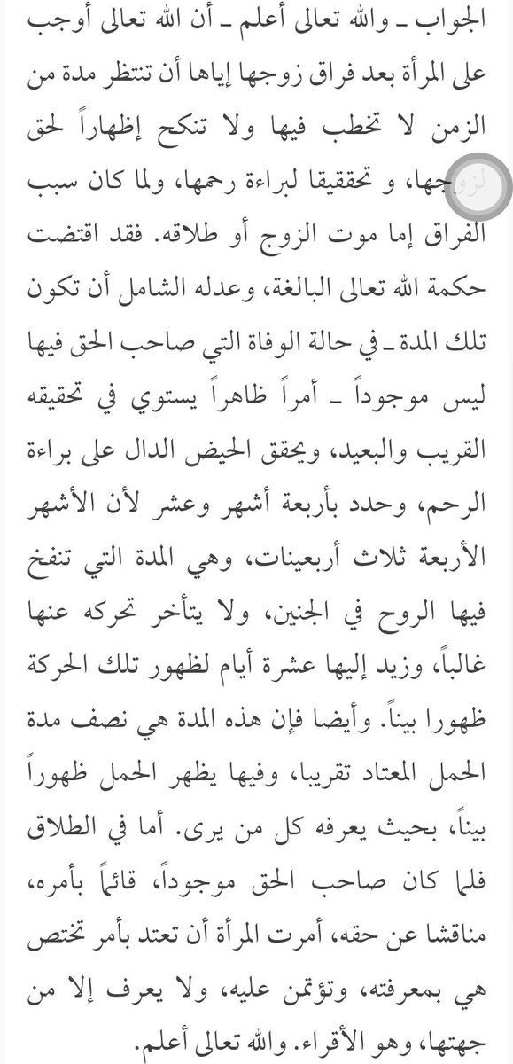 ج/ مع الوضع في الاعتبار أن تلمس الحكم باب اجتهاد وأن مقتضى التسليم لأمر ثابت وأن الحكمة في العدة بأنواعها معقولة المعنى فيمكن التأمل في الخلاصة أدناه.