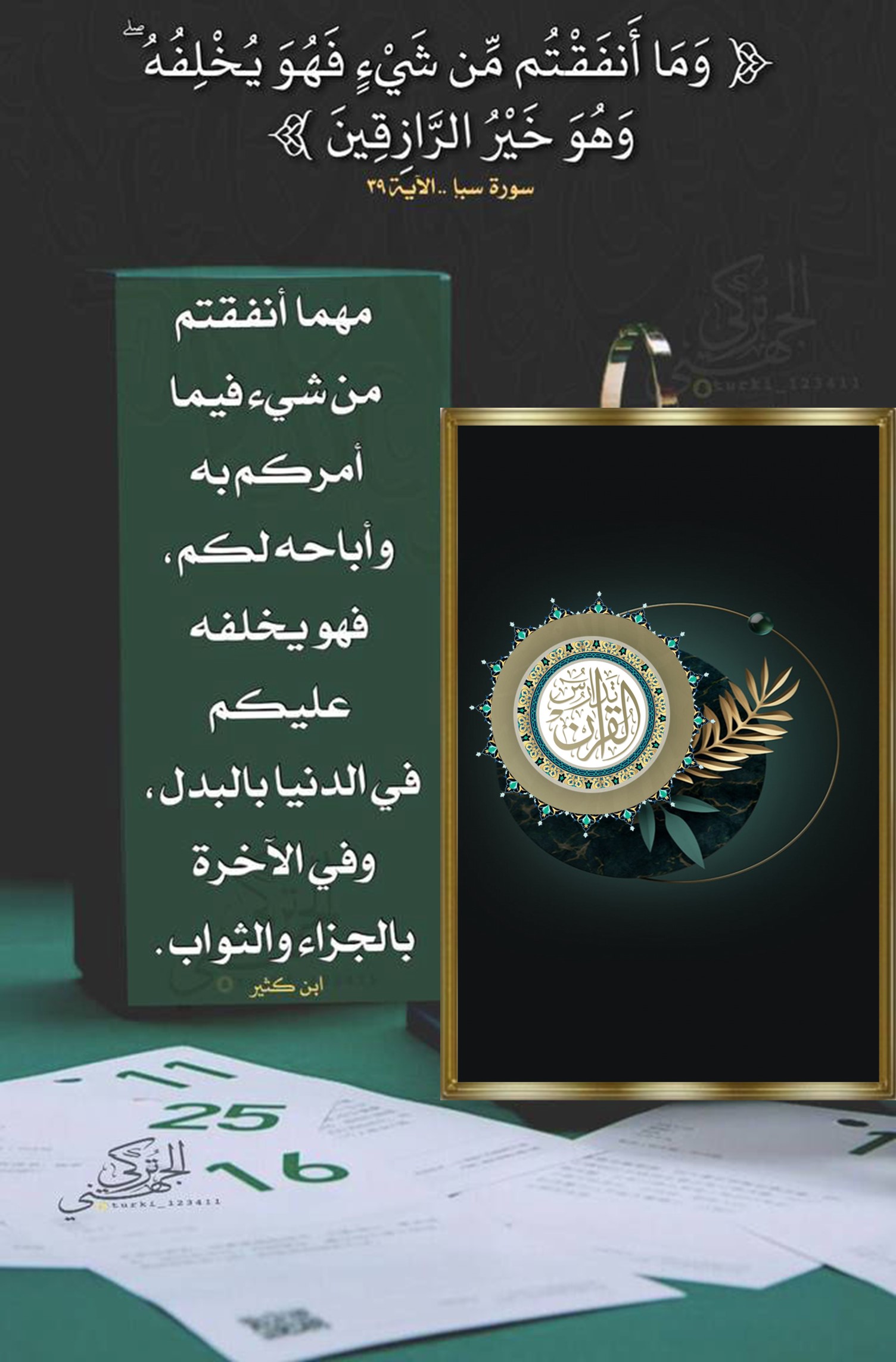 • ﴿قُلْ إِنَّ رَبِّي يَبْسُطُ الرِّزْقَ لِمَن يَشَاءُ مِنْ عِبَادِهِ وَيَقْدِرُ لَهُ وَمَا أَنفَقْتُم مِّن شَيْءٍ فَهُوَ يُخْلِفُهُ وَهُوَ خَيْرُ الرَّازِقِينَ ﴿٣٩﴾    [سبأ   آية:٣٩]