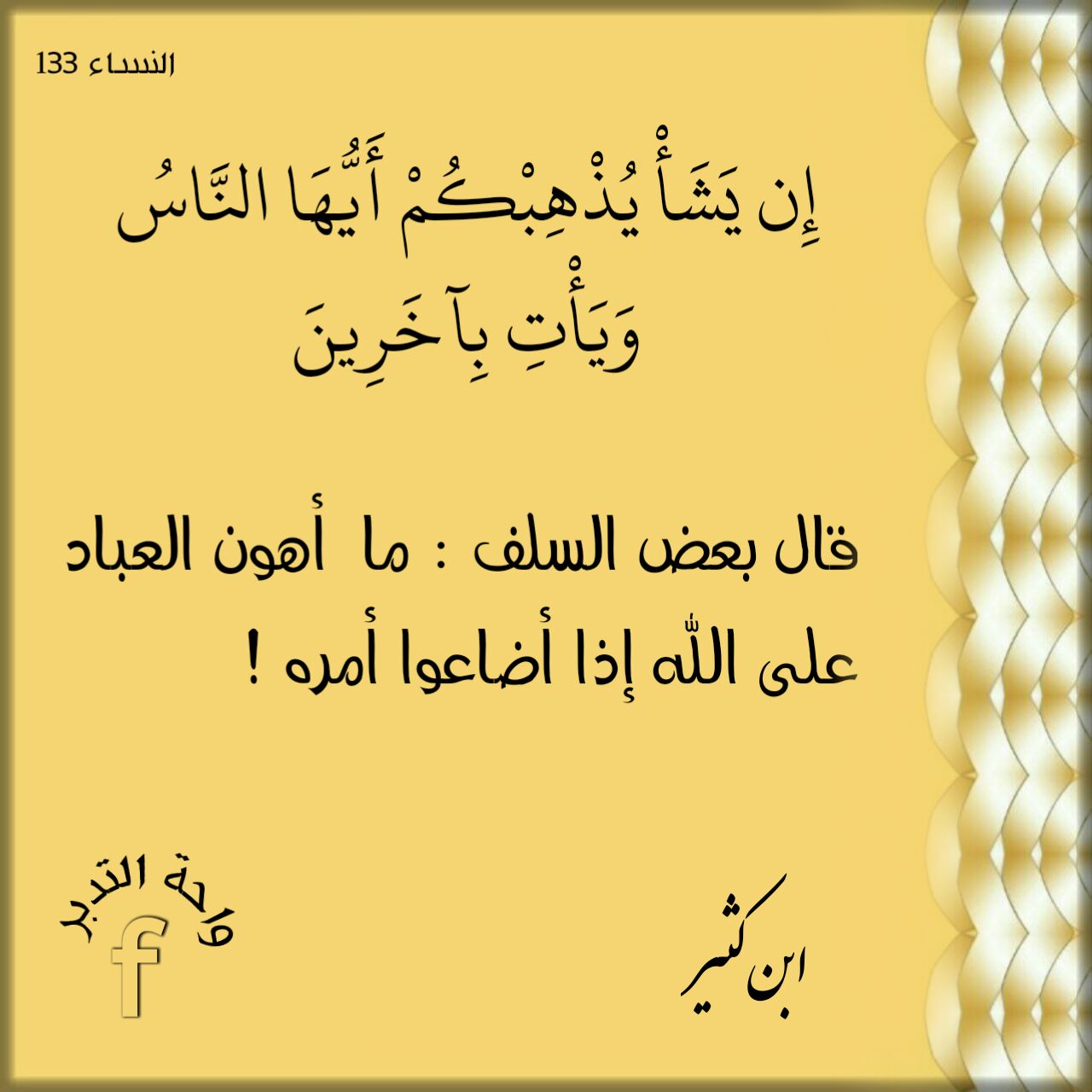 • ﴿إِن يَشَأْ يُذْهِبْكُمْ أَيُّهَا النَّاسُ وَيَأْتِ بِآخَرِينَ وَكَانَ اللَّهُ عَلَى ذَلِكَ قَدِيرًا ﴿١٣٣﴾    [النساء   آية:١٣٣]