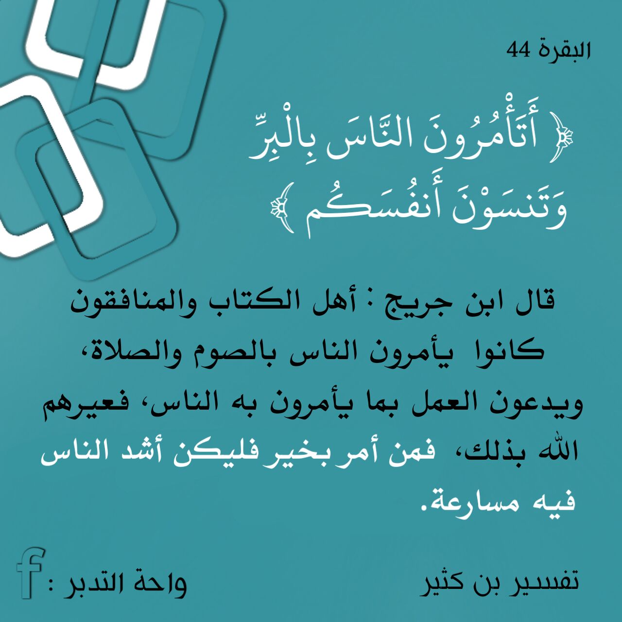 • ﴿أَتَأْمُرُونَ النَّاسَ بِالْبِرِّ وَتَنسَوْنَ أَنفُسَكُمْ وَأَنتُمْ تَتْلُونَ الْكِتَابَ أَفَلَا تَعْقِلُونَ ﴿٤٤﴾    [البقرة   آية:٤٤]