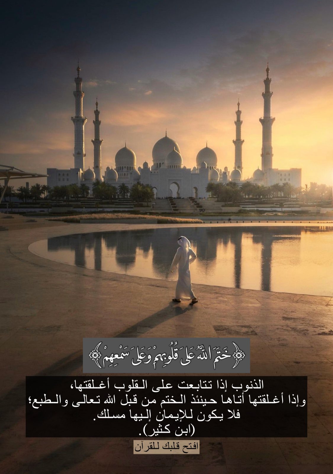 • ﴿خَتَمَ اللَّهُ عَلَى قُلُوبِهِمْ وَعَلَى سَمْعِهِمْ وَعَلَى أَبْصَارِهِمْ غِشَاوَةٌ وَلَهُمْ عَذَابٌ عَظِيمٌ ﴿٧﴾    [البقرة   آية:٧]