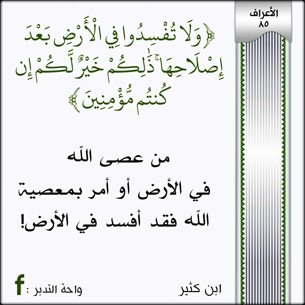 ﴿وَلَا تُفْسِدُوا فِي الْأَرْضِ بَعْدَ إِصْلَاحِهَا ذَلِكُمْ خَيْرٌ لَّكُمْ إِن كُنتُم مُّؤْمِنِينَ﴾: من عصى الله في الأرض أو أمر بمعصية الله فقد أفسد في الأرض!