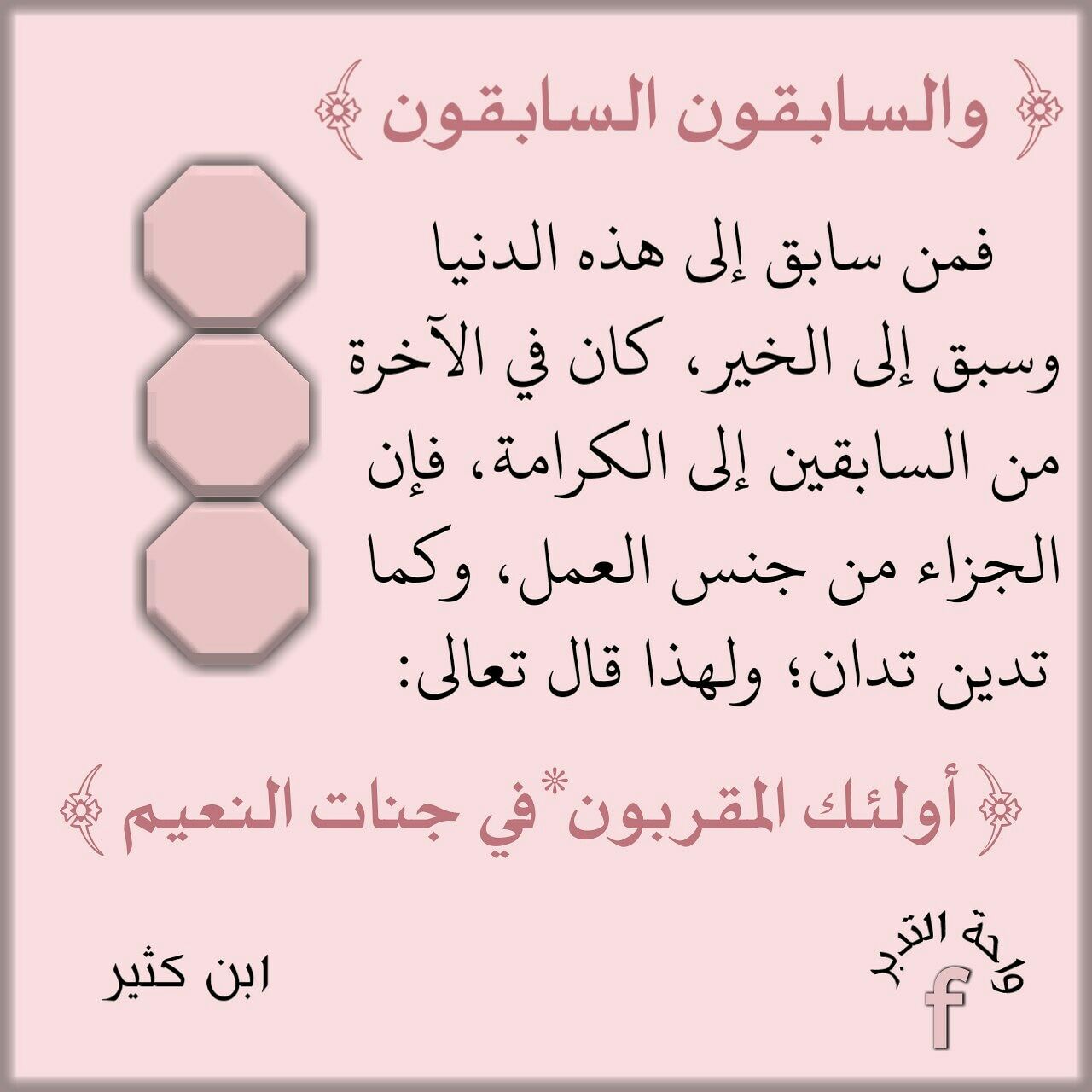 ﴿وَالسَّابِقُونَ السَّابِقُونَ﴾: فمن سابق إلى هذه الدنيا وسبق إلى الخير، كان في الآخرة من السابقين إلى الكرامة، فإن الجزاء من جنس العمل، وكما تدين تدان؛ ولهذا قال تعالى: (أولئك المقربون • في جنات النعيم).
