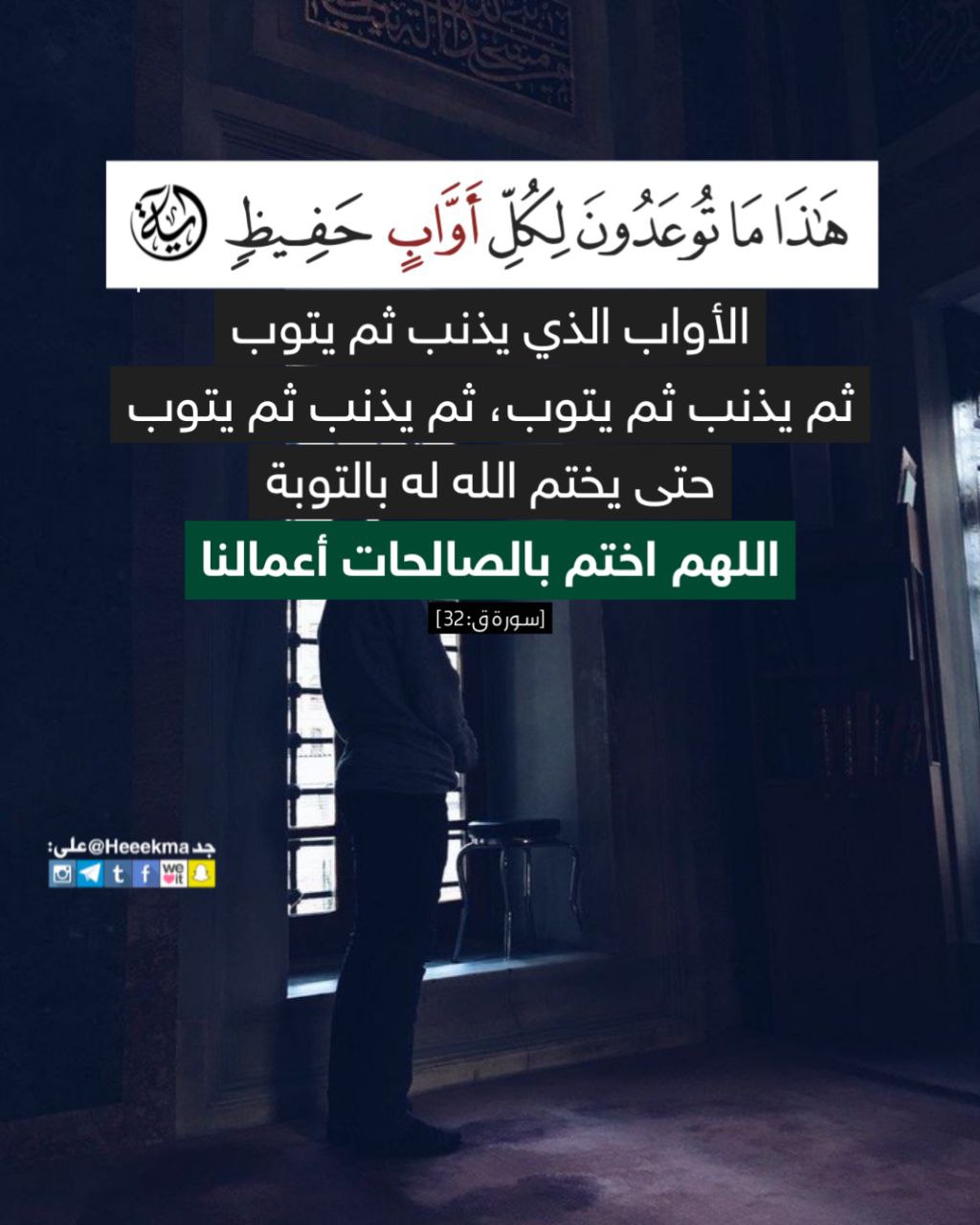 (هُذَا مَا تُوعَدُونَ لِكُلِّ أَوَّابٍ) الأواب الذي يذنب ثم يتوب، ثم يذنب ثم يتوب، ثم يذنب ثم يتوب حتى يختم الله له بالتوبة .. اللهم اختم بالصالحات أعمالنا.