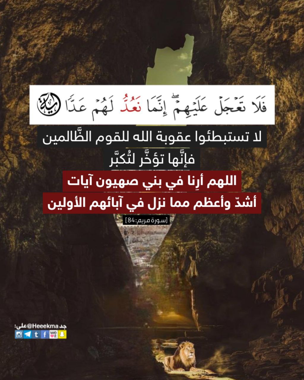 لا تستبطئوا عقوبة الله للقوم الظَّالمين، فإنَّها تؤخَّر لتُكبَّر، اللهم أرِنا في بني صهيون آيات أشدّ وأعظم مما نزل في آبائهم الأولين.