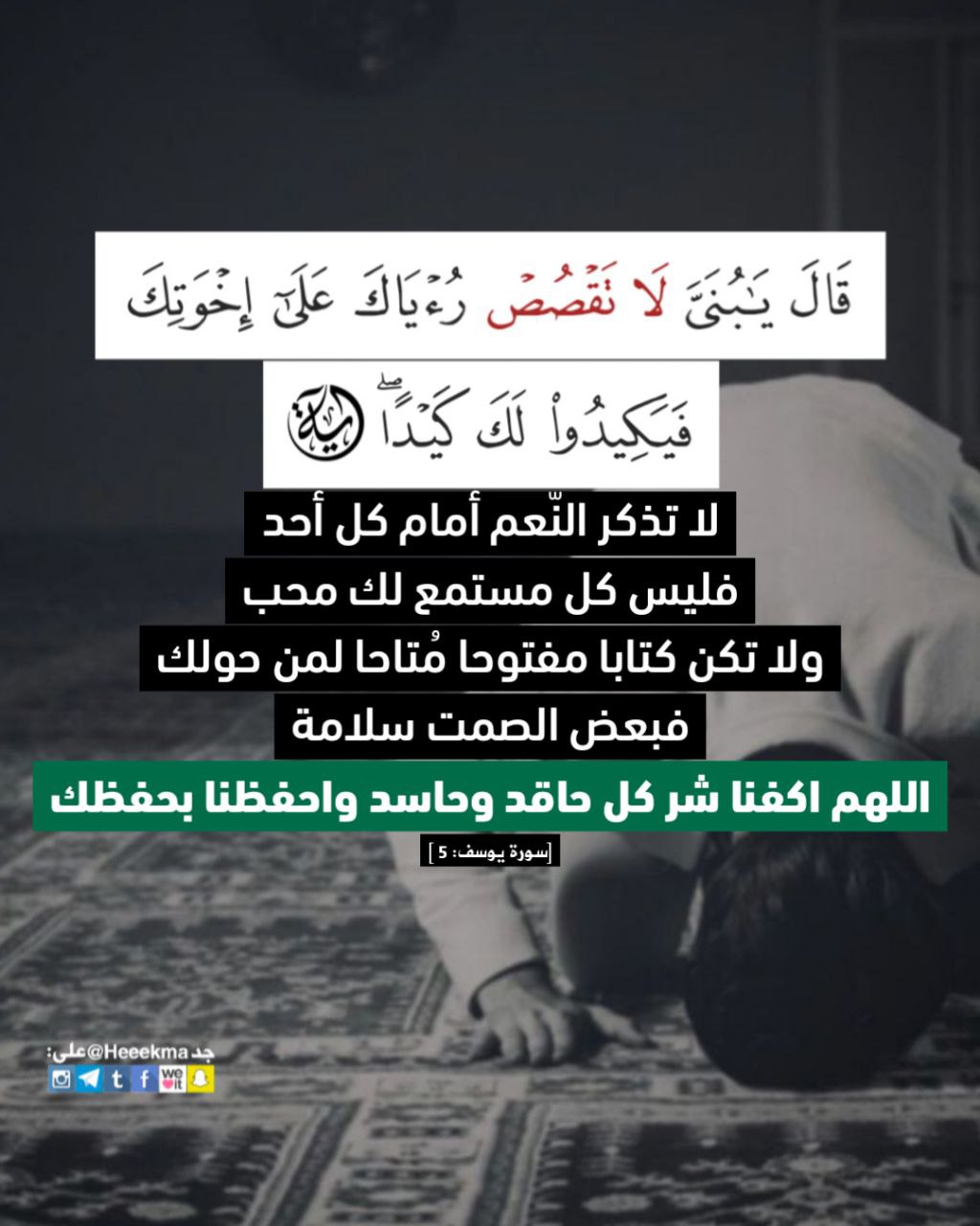 ﴿قَالَ يَا بُنَيَّ لَا تَقْصُصْ رُؤْيَاكَ عَلَى إِخْوَتِكَ فَيَكِيدُوا لَكَ كَيْدًا﴾: