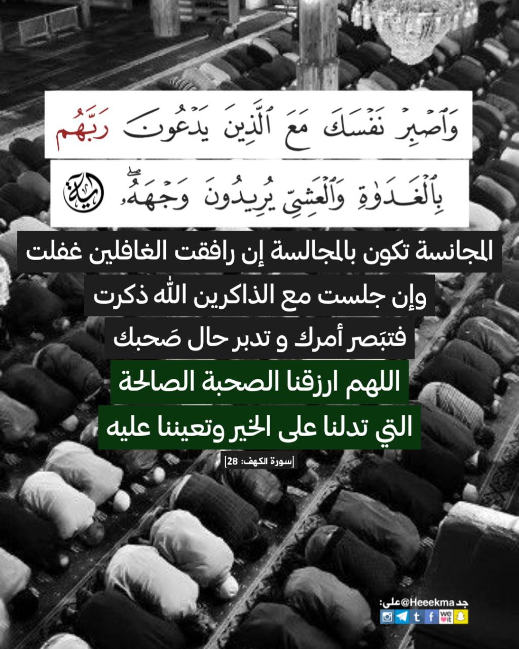﴿وَاصْبِرْ نَفْسَكَ مَعَ الَّذِينَ يَدْعُونَ رَبَّهُم بِالْغَدَاةِ وَالْعَشِيِّ يُرِيدُونَ وَجْهَهُ﴾