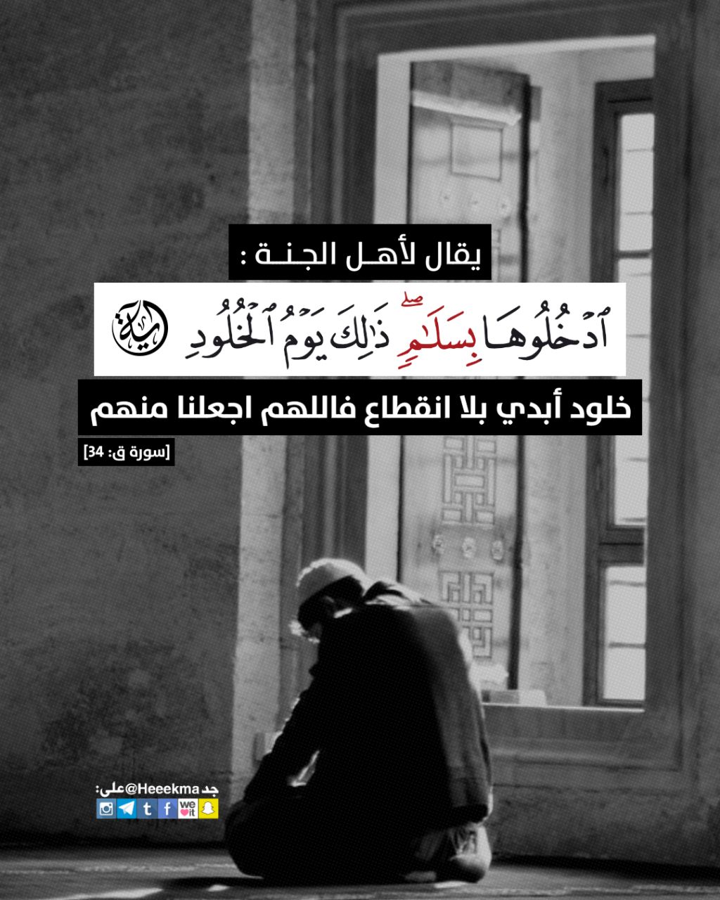 يُقال لأهل الجنة: (ادخُلوها بسلامٍ ذلك يوم الخلود) خلود أبدي بلا انقطاع، فاللهم اجعلنا منهم.