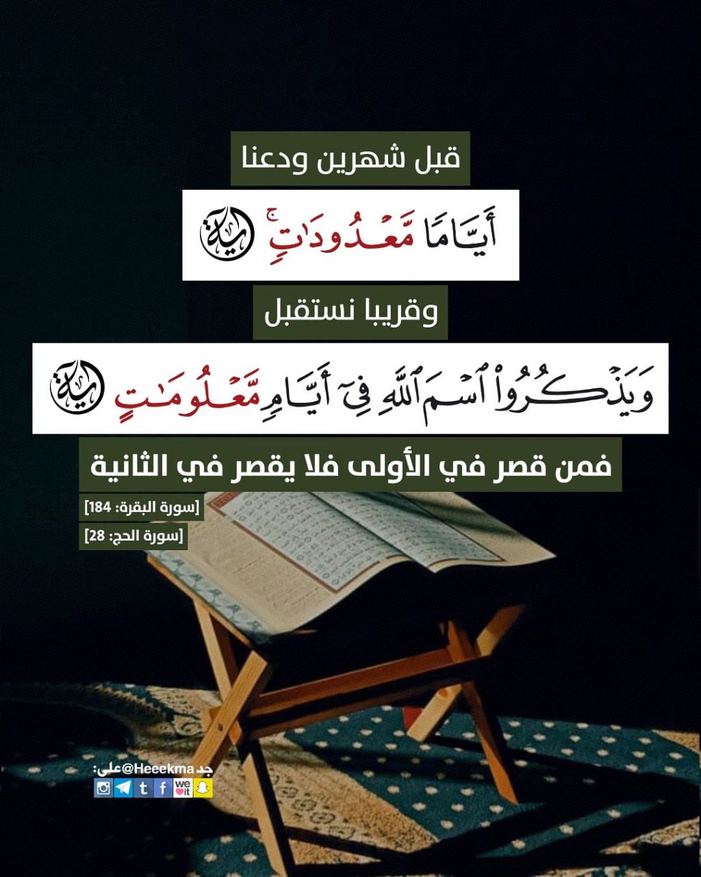 وقريباً نستقبل ﴿وَيَذْكُرُوا اسْمَ اللَّهِ فِي أَيَّامٍ مَّعْلُومَاتٍ﴾ فمن قصَّر في الأولى فلا يُقصِّر في الثانية.