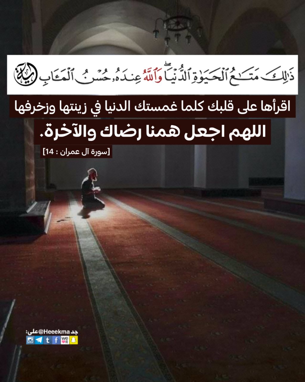 اقرأها على قلبك كلما غمستك الدنيا في زينتها وزخرفها، اللهم اجعل همنا رضاك والآخرة.