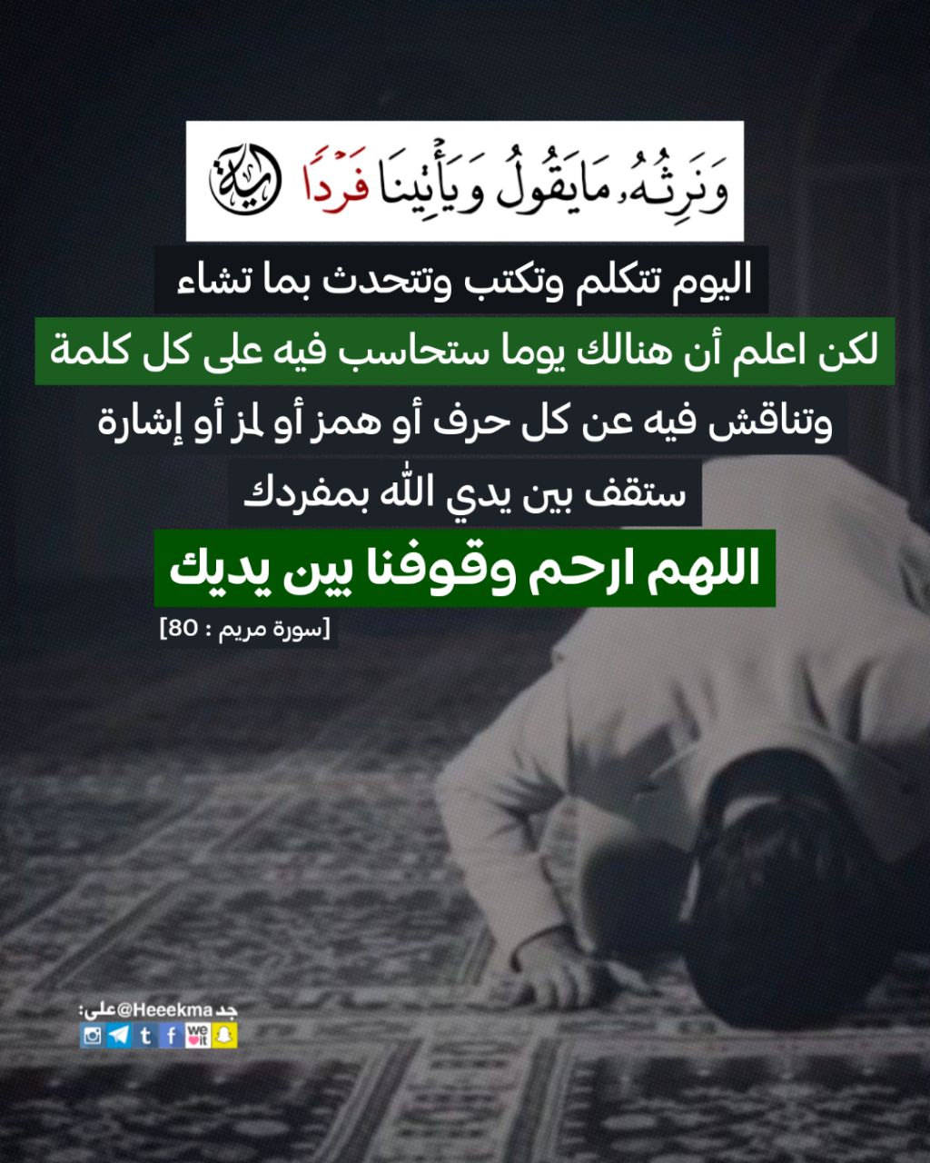 اليوم تتكلم وتكتب وتتحدث بما تشاء!! .. لكن اعلم أن هنالك يوم ستحاسب فيه على كل كلمة .. وتناقش فيه عن كل حرف .. عن كل همز أو لمز أو إشارة .. ستقف بين يدي الله بمفردك .. اللهم ارحم وقوفنا بين يديك.