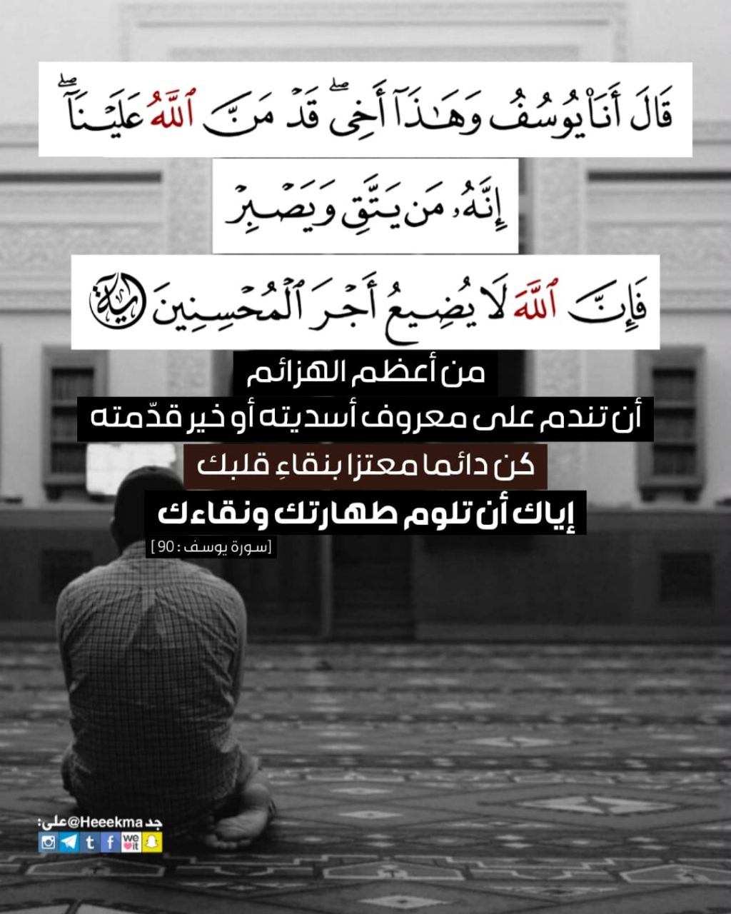 ﴿قَالَ أَنَا يُوسُفُ وَهَذَا أَخِي قَدْ مَنَّ اللَّهُ عَلَيْنَا إِنَّهُ مَن يَتَّقِ وَيَصْبِرْ فَإِنَّ اللَّهَ لَا يُضِيعُ أَجْرَ الْمُحْسِنِينَ﴾: