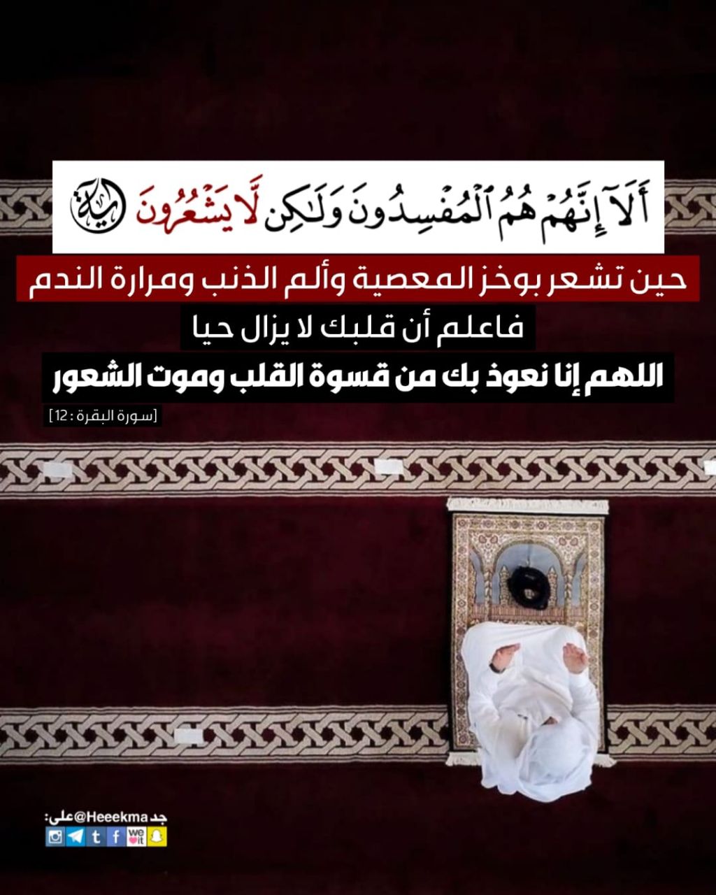 حين تشعر بوخز المعصية وألم الذنب ومرارة الندم فاعلم أن قلبك لا يزال حيًّا، اللهم إنا نعوذ بك من قسوة القلب وموت الشعور.
