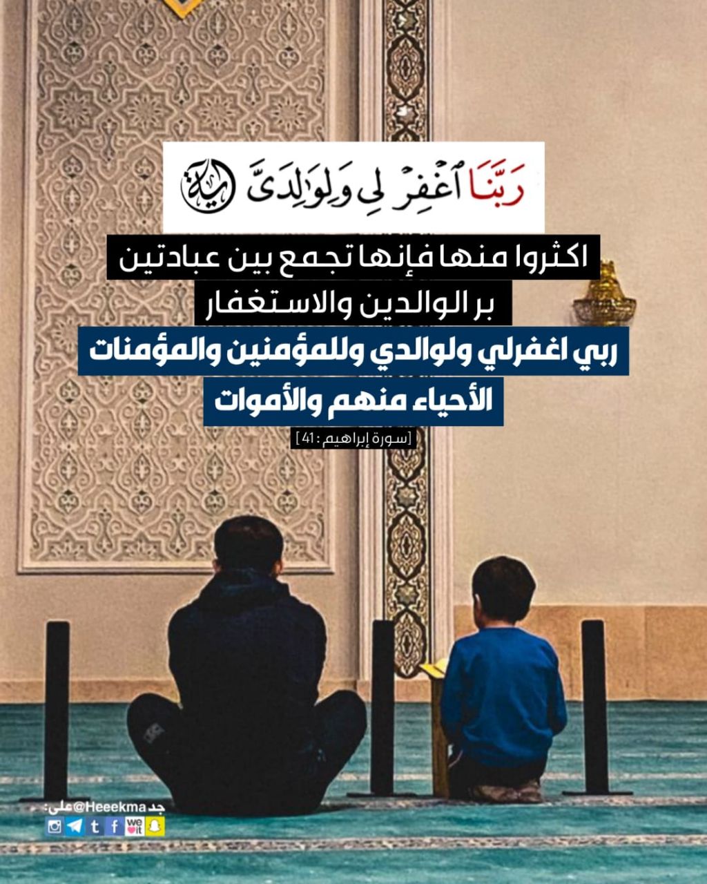 اكثروا منها فإنها تجمع بين عبادتين، بر الوالدين والاستغفار، ربي اغفر لي ولوالدي وللمؤمنين والمؤمنات الأحياء منهم والأموات.