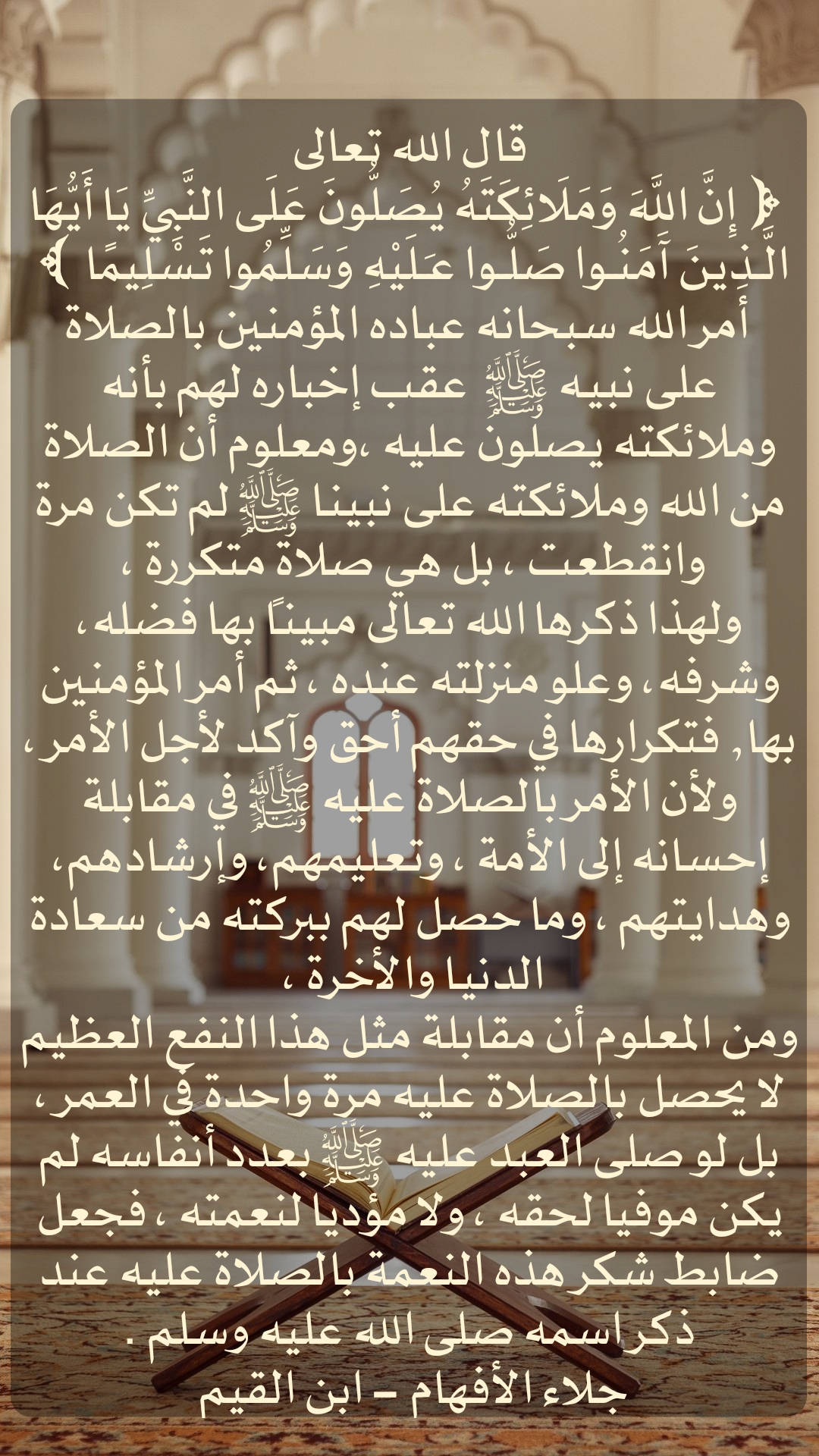 قال الله تعالى(إِنَّ اللَّهَ وَمَلَائِكَتَهُ يُصَلُّونَ عَلَى النَّبِيِّ يَا أَيُّهَا الَّذِينَ آمَنُوا صَلُّوا عَلَيْهِ وَسَلِّمُوا تَسْلِيمًا ) أمر الله سبحانه عباده المؤمنين بالصلاة على نبيه صلى ال... المزيد