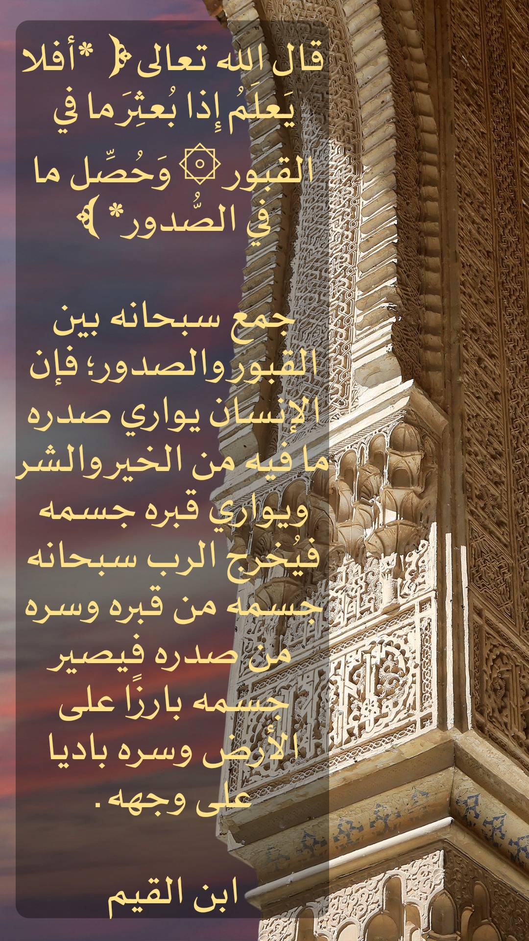 قال الله تعالى ( أفلا يَعْلَمُ إِذا بُعثِرَ ما في القبور *وحُصّل ما في الصُّدور )