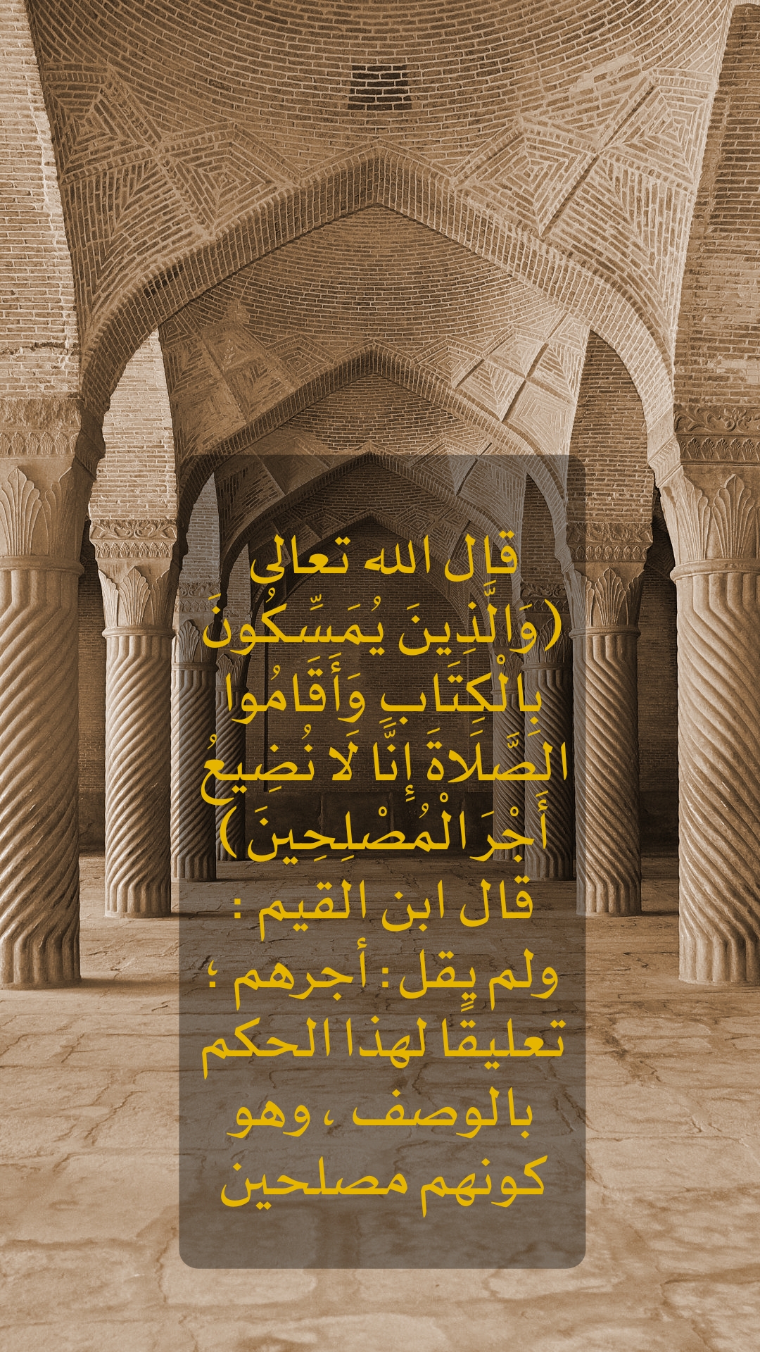 قال الله تعالى( وَالَّذِينَ يُمَسِّكُونَ بِالْكِتَابِ وَأَقَامُوا الصَّلَاةَ إِنَّا لَا نُضِيعُ أَجْرَ الْمُصْلِحِينَ )