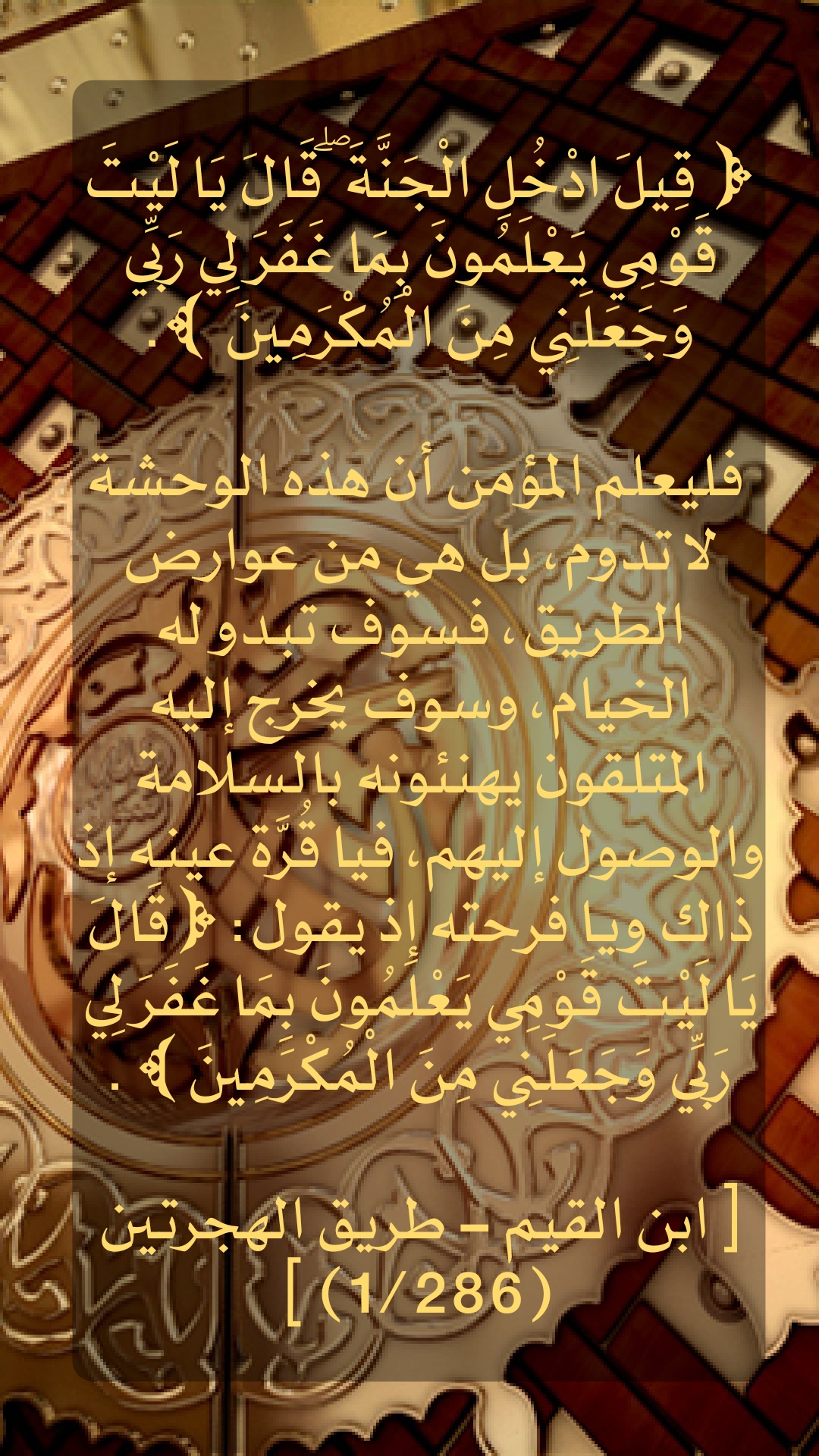 (قِيلَ ادْخُلِ الْجَنَّةَ قَالَ يَا لَيْتَ قومي يعلمون بما غفر لي ربي . وَجَعَلَنِي مِنَ الْمُكْرَمِينَ ) .