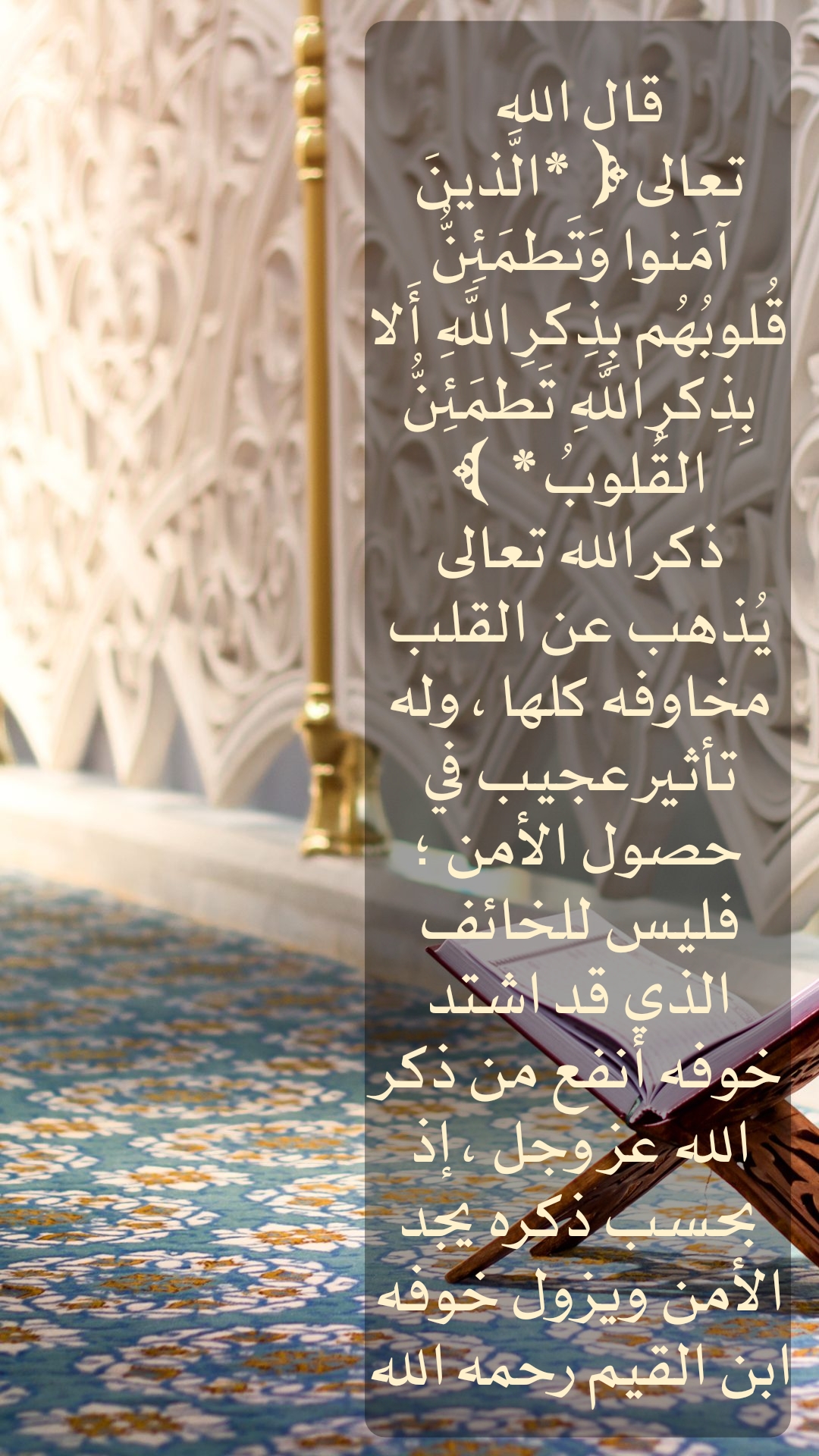 قال الله تعالى * (الَّذينَ آمَنوا وَتَطْمَئِنَّ قُلُوبُهُم بِذِكْرِ اللَّهِ أَلا بِذِكْرِ اللَّهِ تَطْمَئِنَّ القلوب * )
