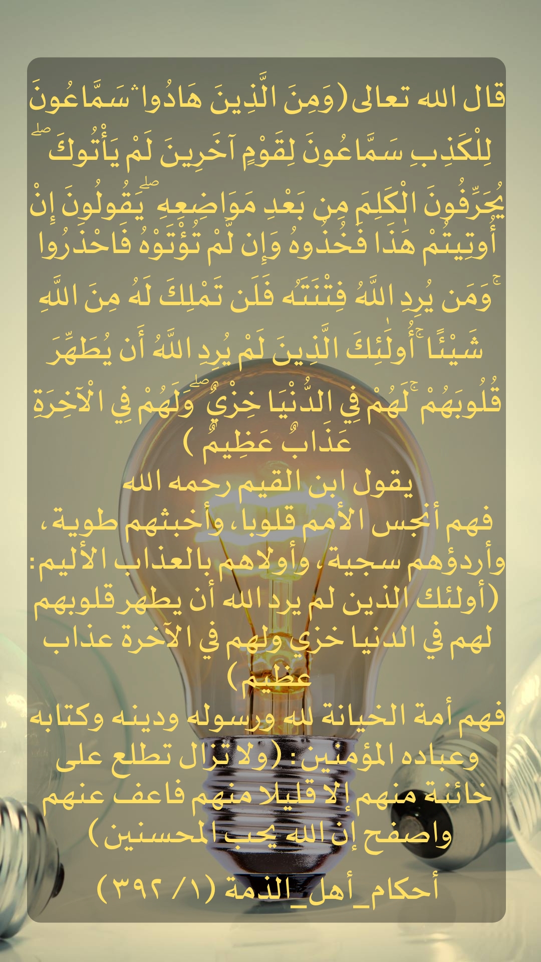 قال الله تعالى ( وَمِنَ الَّذِينَ هَادُوا سَمَّاعُونَ لِلْكَذِبِ سَمَّاعُونَ لِقَوْمٍ آخَرِينَ لَمْ يَأْتُوكَ يُحَرِّفُونَ الْكَلِمَ مِن بَعْدِ مَوَاضِعِهِ يَقُولُونَ إِنْ أوتِيتُمْ هَذَا فَخُذُوهُ وَ... المزيد