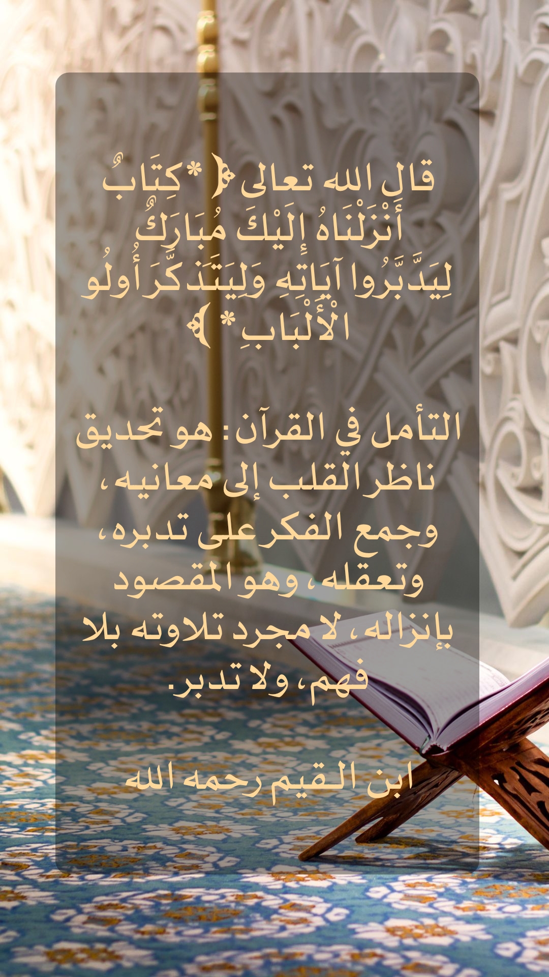 قال الله تعالى ( كِتَابٌ أَنْزَلْنَاهُ إِلَيْكَ مُبَارَكٌ لِيَدَّبَّرُوا آيَاتِهِ وَلِيَتَذَكَّرَ أُولُو الْأَلْبَابِ )