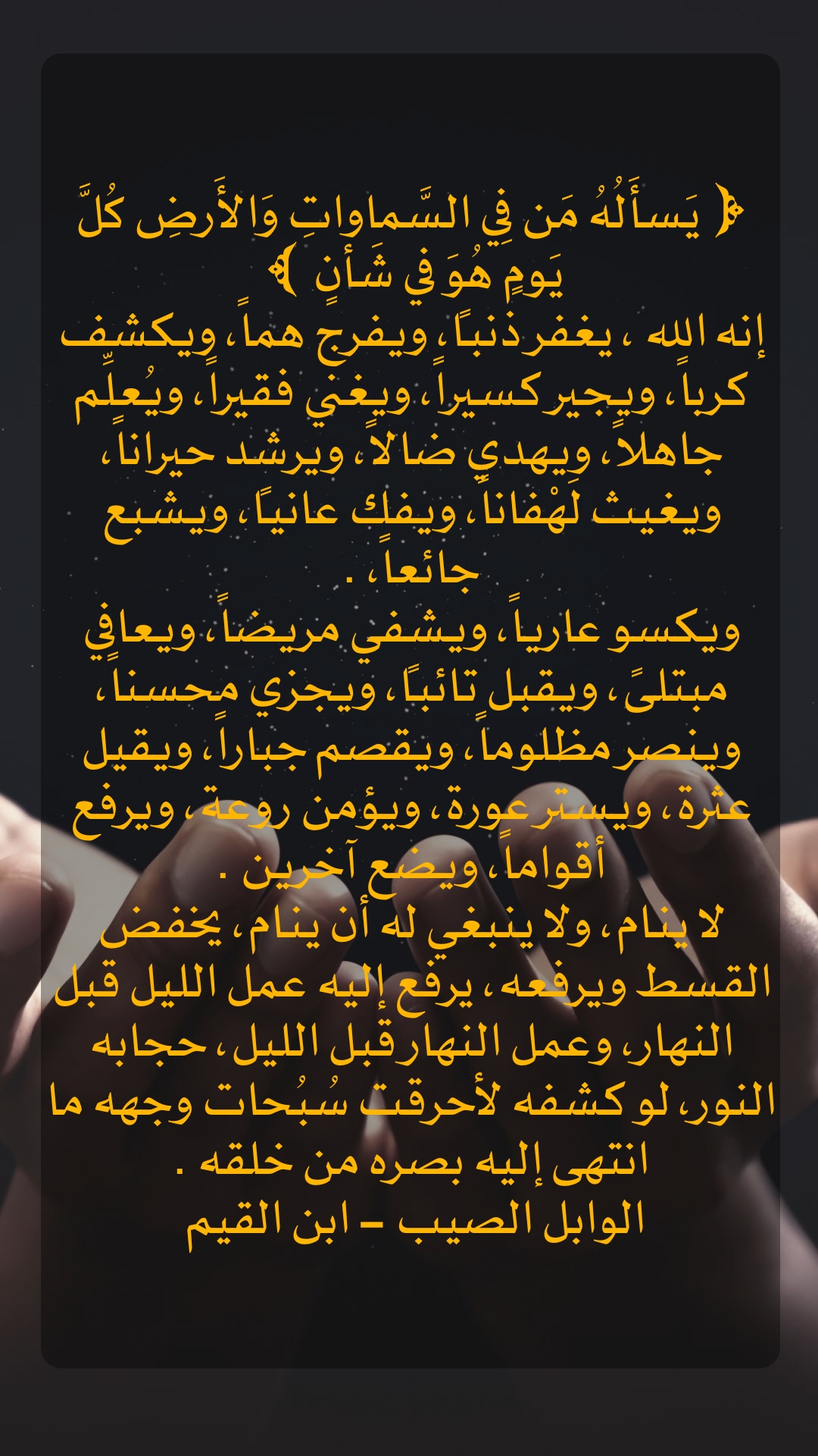 (يسألُهُ مَن فِي السَّمَاوَاتِ وَالْأَرْضِ كُلَّ يوم هُوَ فِي شَأْنٍ )