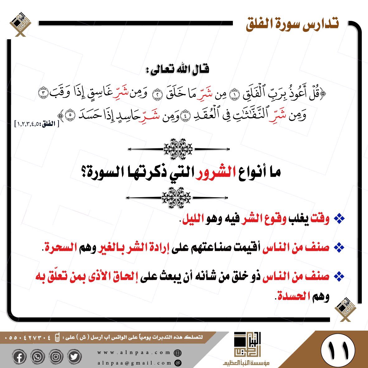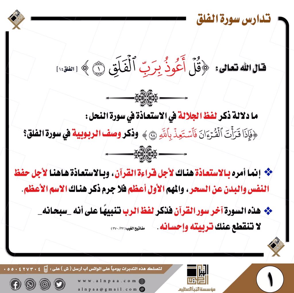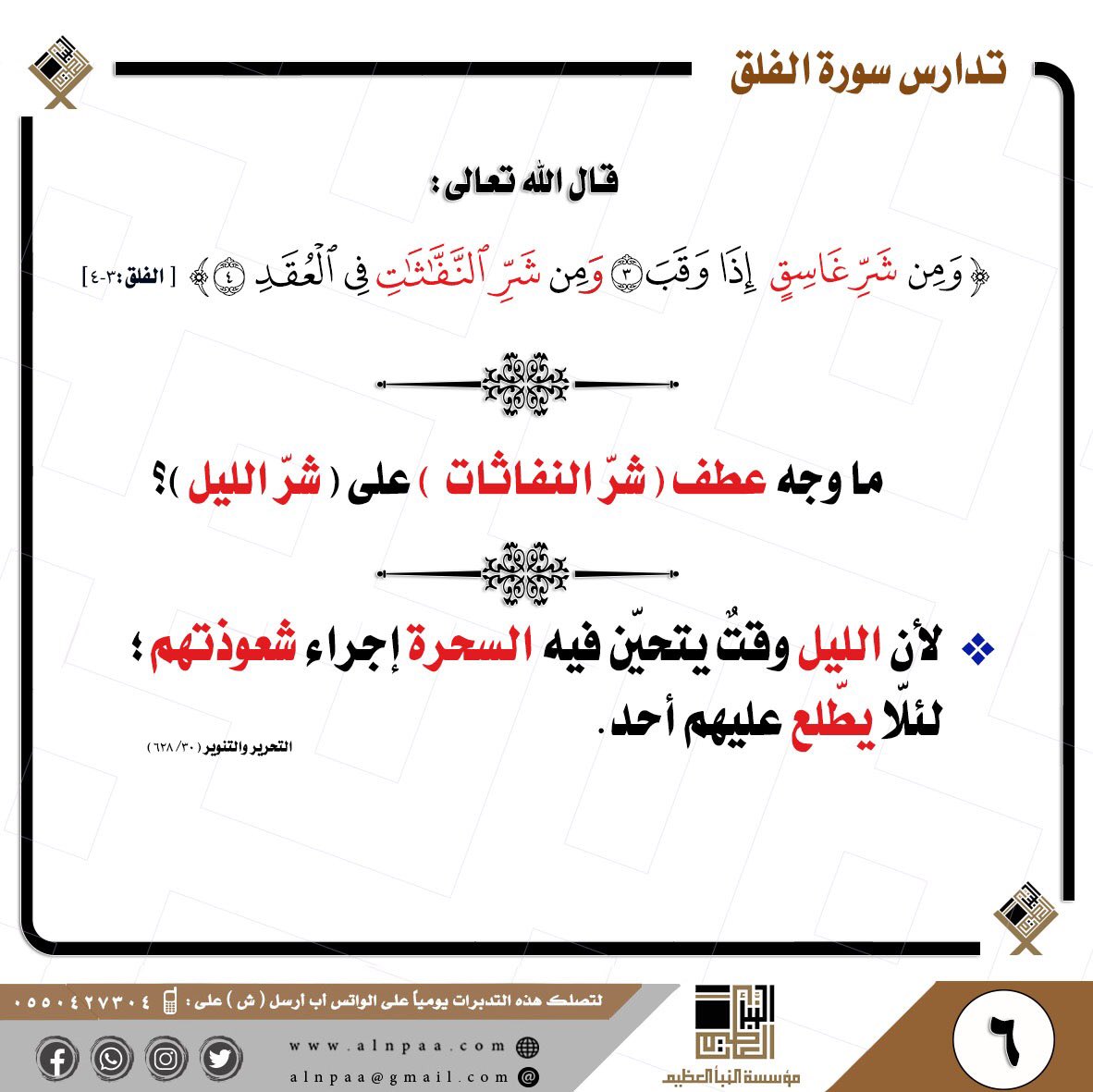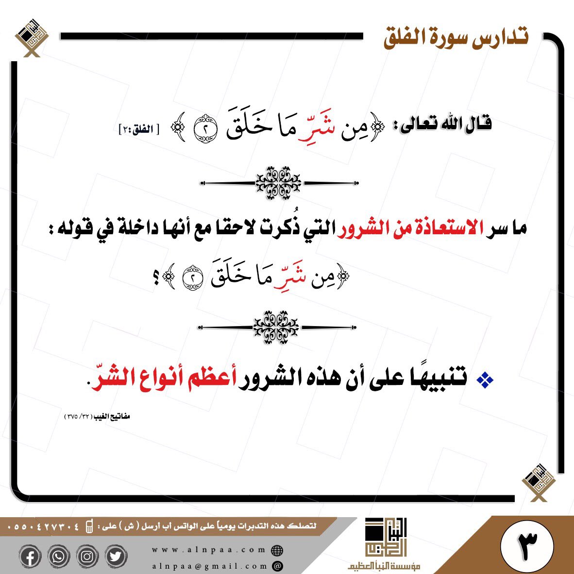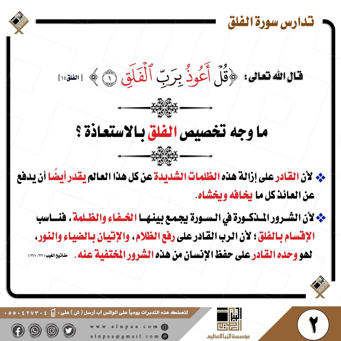 • التساؤل: قال تعالى: ﴿قُلْ أَعُوذُ بِرَبِّ الْفَلَقِ﴾ ما وجه تخصيص الفلق بالاستعاذة؟