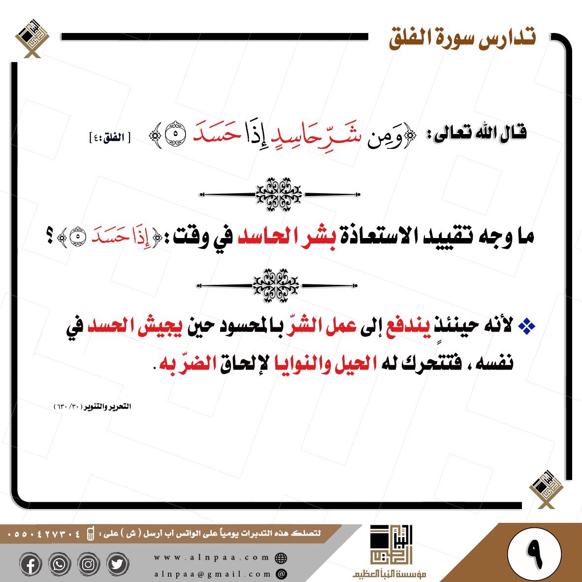 • التساؤل: قال الله تعالى: ﴿وَمِن شَرِّ حَاسِدٍ إِذَا حَسَدَ﴾ ما وجه تقييد الاستعاذة بشر الحاسد في وقت: (إِذَا حَسَدَ)؟