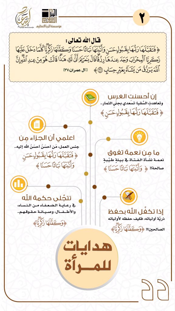 ▪️ ﴿فَتَقَبَّلَهَا رَبُّهَا بِقَبُولٍ حَسَنٍ وَأَنبَتَهَا نَبَاتًا حَسَنًا﴾: