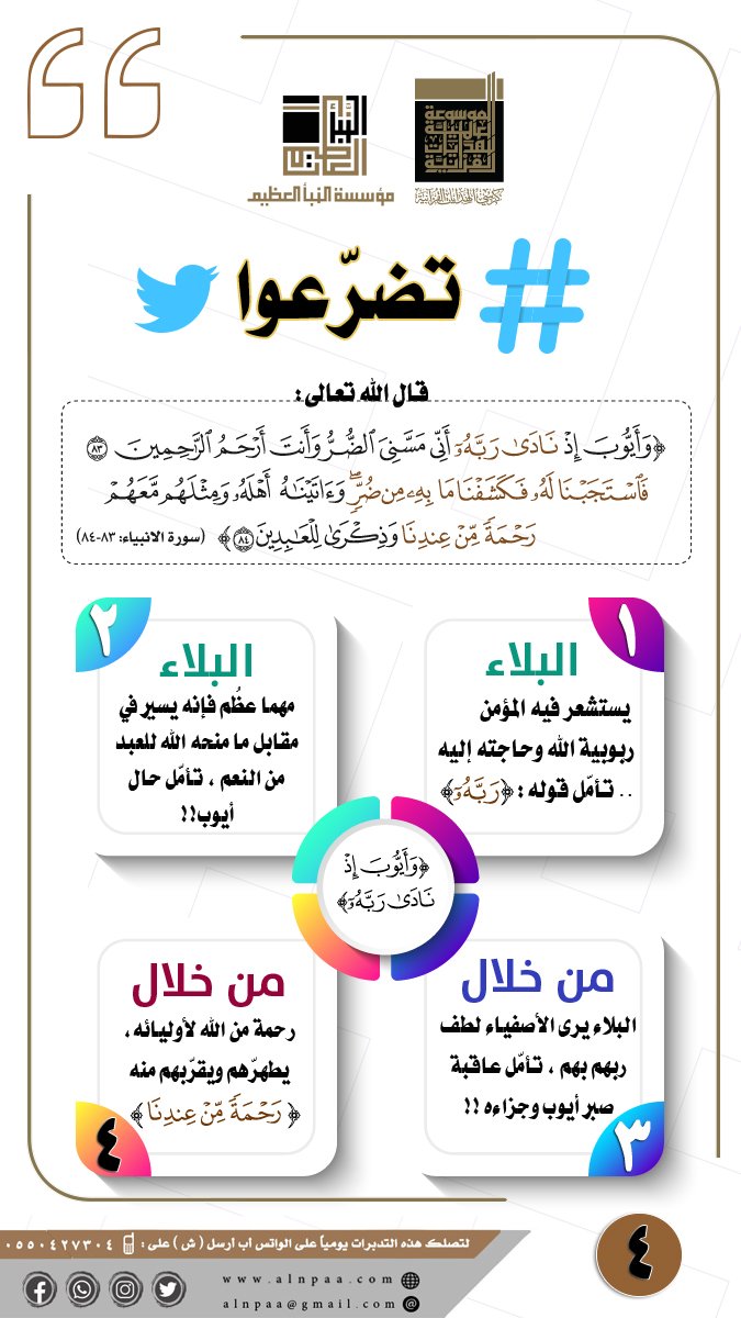 ▪️ ﴿وَأَيُّوبَ إِذْ نَادَى رَبَّهُ أَنِّي مَسَّنِيَ الضُّرُّ وَأَنتَ أَرْحَمُ الرَّاحِمِينَ • فَاسْتَجَبْنَا لَهُ فَكَشَفْنَا مَا بِهِ مِن ضُرٍّ وَآتَيْنَاهُ أَهْلَهُ وَمِثْلَهُم مَّعَهُمْ رَحْمَةً مّ... المزيد
