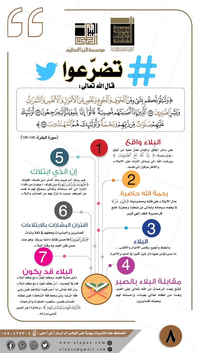▪️ ﴿وَلَنَبْلُوَنَّكُم بِشَيْءٍ مِّنَ الْخَوْفِ وَالْجُوعِ وَنَقْصٍ مِّنَ الْأَمْوَالِ وَالْأَنفُسِ وَالثَّمَرَاتِ وَبَشِّرِ الصَّابِرِينَ • الَّذِينَ إِذَا أَصَابَتْهُم مُّصِيبَةٌ قَالُوا إِنَّا لِلّ... المزيد