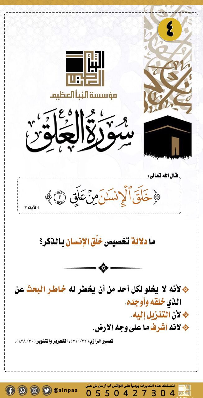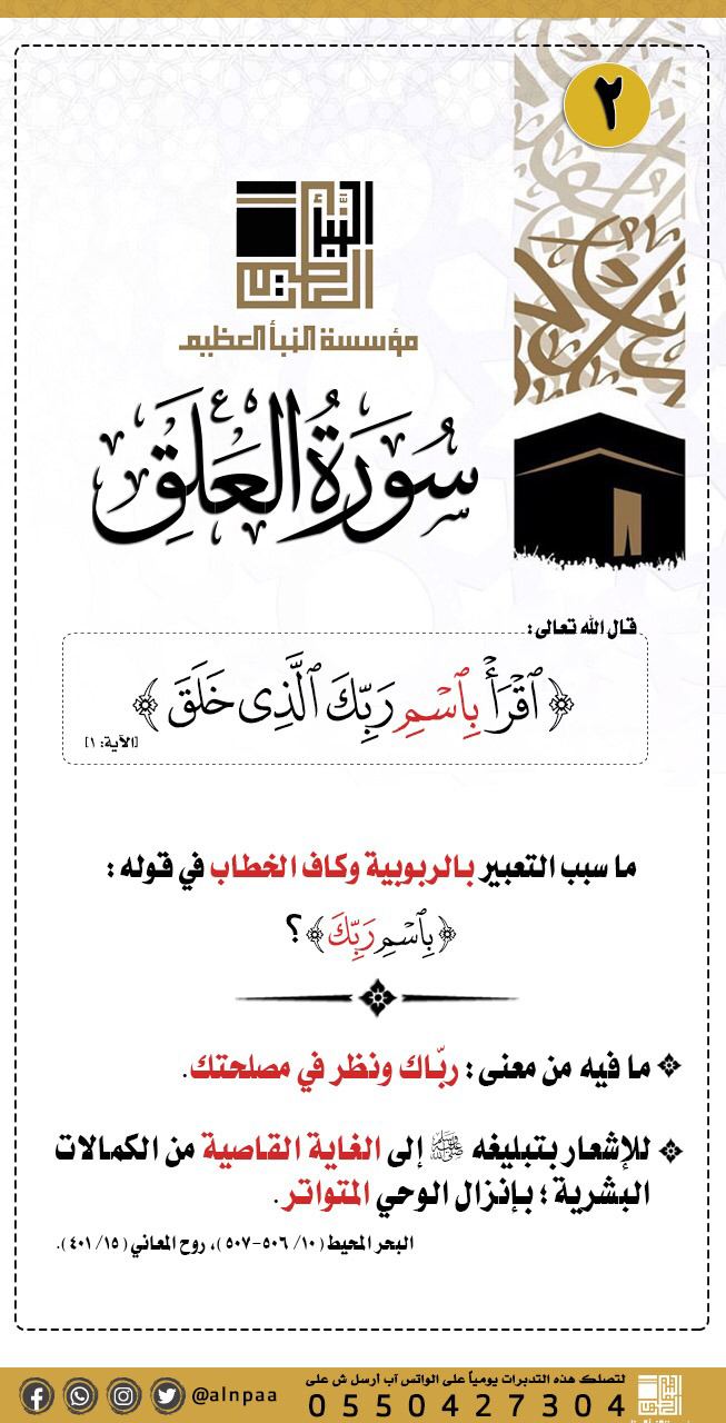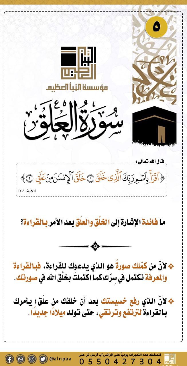 * لأن الذي رفع خسيستك بعد أن خلقك من علق؛ يأمرك بالقراءة لترتفع وترتقي، حتى تولد ميلادا جديدا