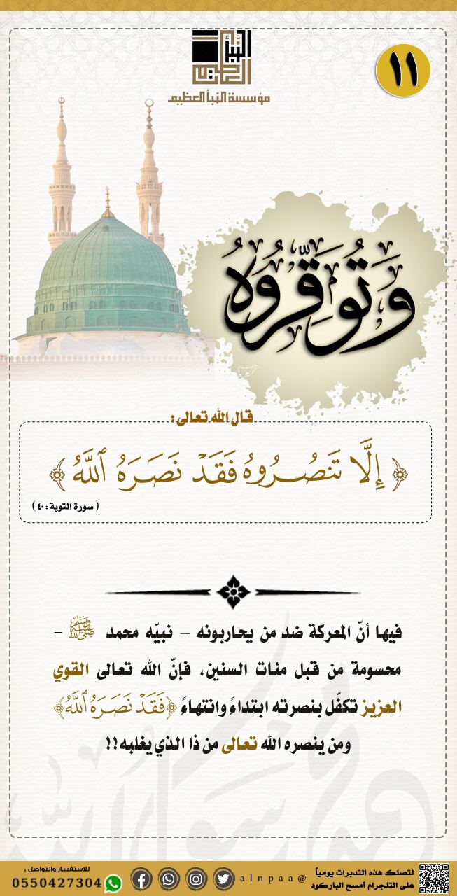 فيها أن المعركة ضد من يحاربونه – نبيه محمد محسومة من قبل مئات السنين، فإن الله تعالى القوي العزيز تكفل بنصرته ابتداء وانتهاء فقد نصره الله ومن ينصره الله تعالى من ذا الذي يغلبه!!