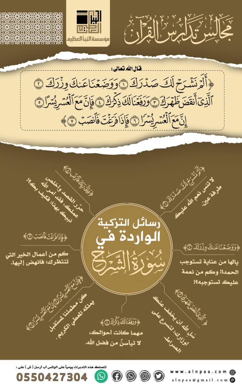 - (فَإِنَّ مَعَ الْعُسْرِ يُسْرًا) ابحث دوماً عن المنح المخفية في تلافيف المحن، واستخلص من العقبات العسيرة دروساً في التفاؤل والأمل، ... المزيد