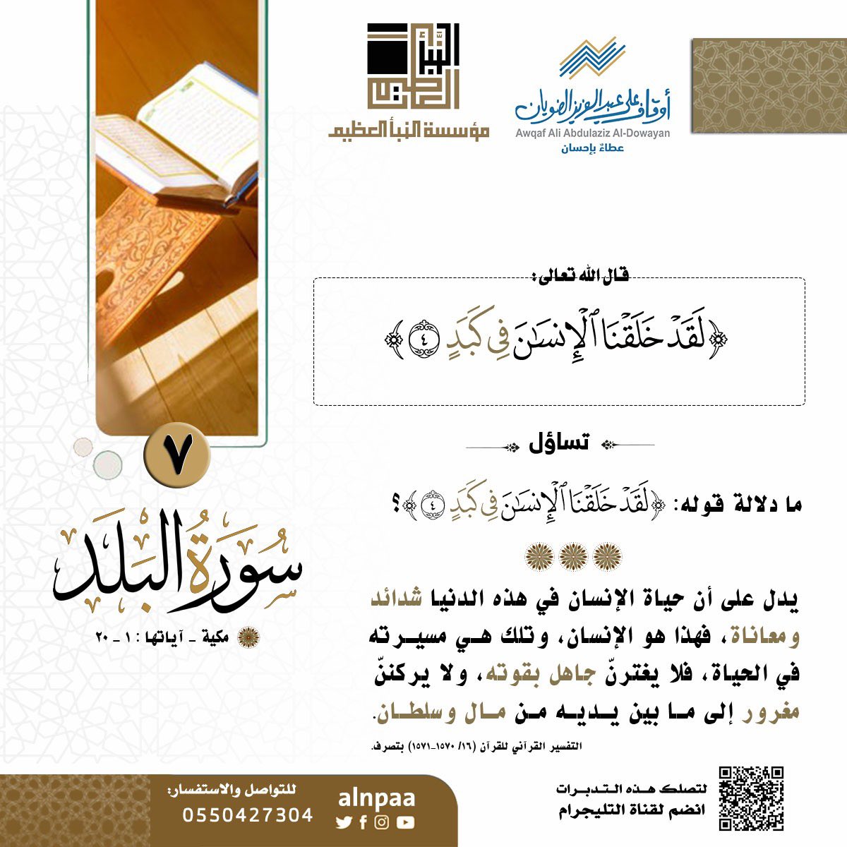 • التساؤل: ما دلالة قوله: ﴿لَقَدْ خَلَقْنَا الْإِنسَانَ فِي كَبَدٍ﴾؟
