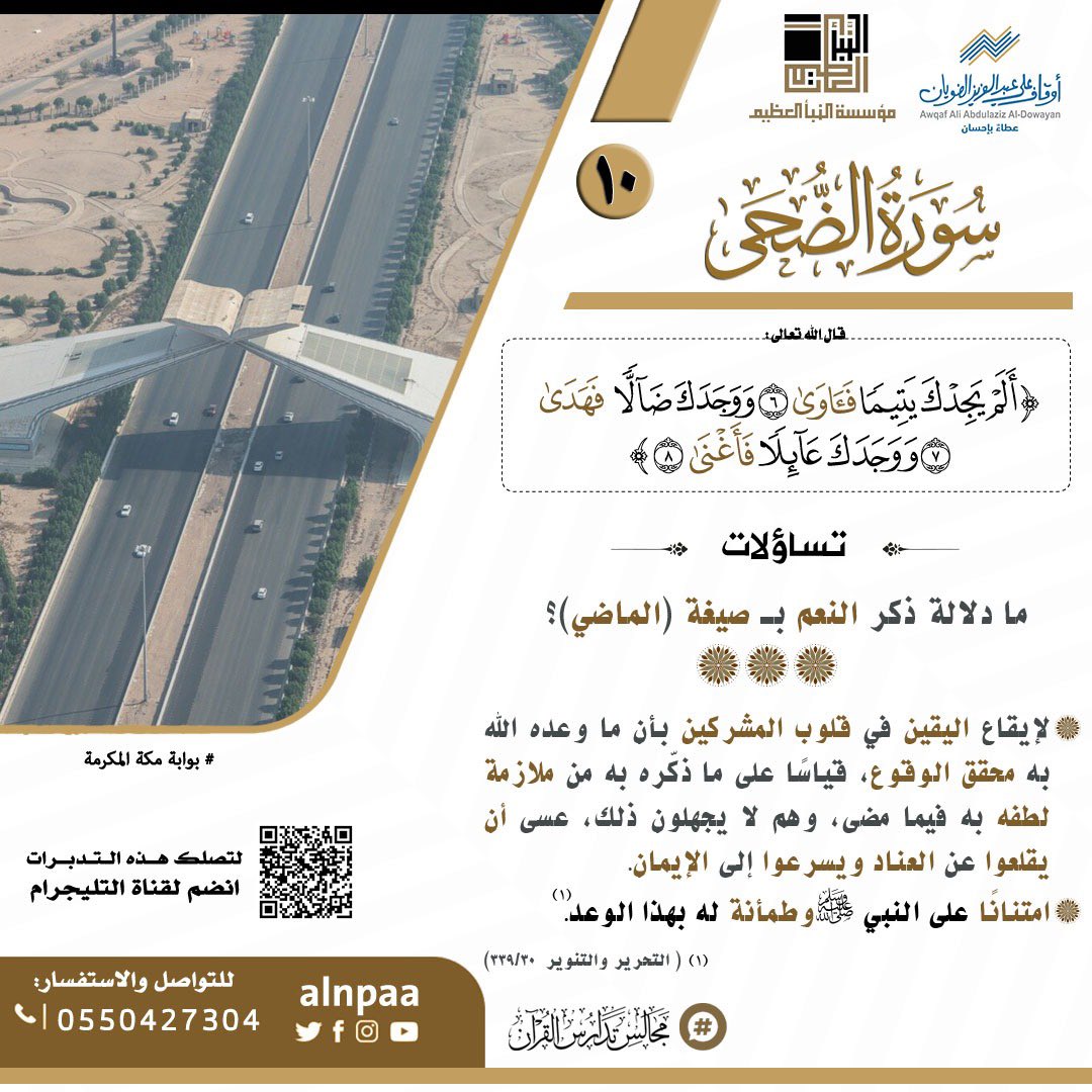 • التساؤل: ﴿أَلَمْ يَجِدْكَ يَتِيمًا فَآوَى • وَوَجَدَكَ ضَالًّا فَهَدَى • وَوَجَدَكَ عَائِلًا فَأَغْنَى﴾ ما دلالة ذكر النعم بـ صيغة (الماضي)؟