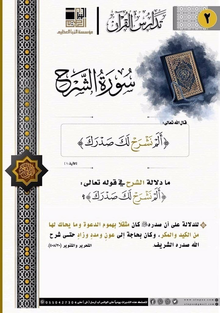 • التساؤل: ما دلالة الشرح في قوله تعالى: ﴿أَلَمْ نَشْرَحْ لَكَ صَدْرَكَ﴾؟