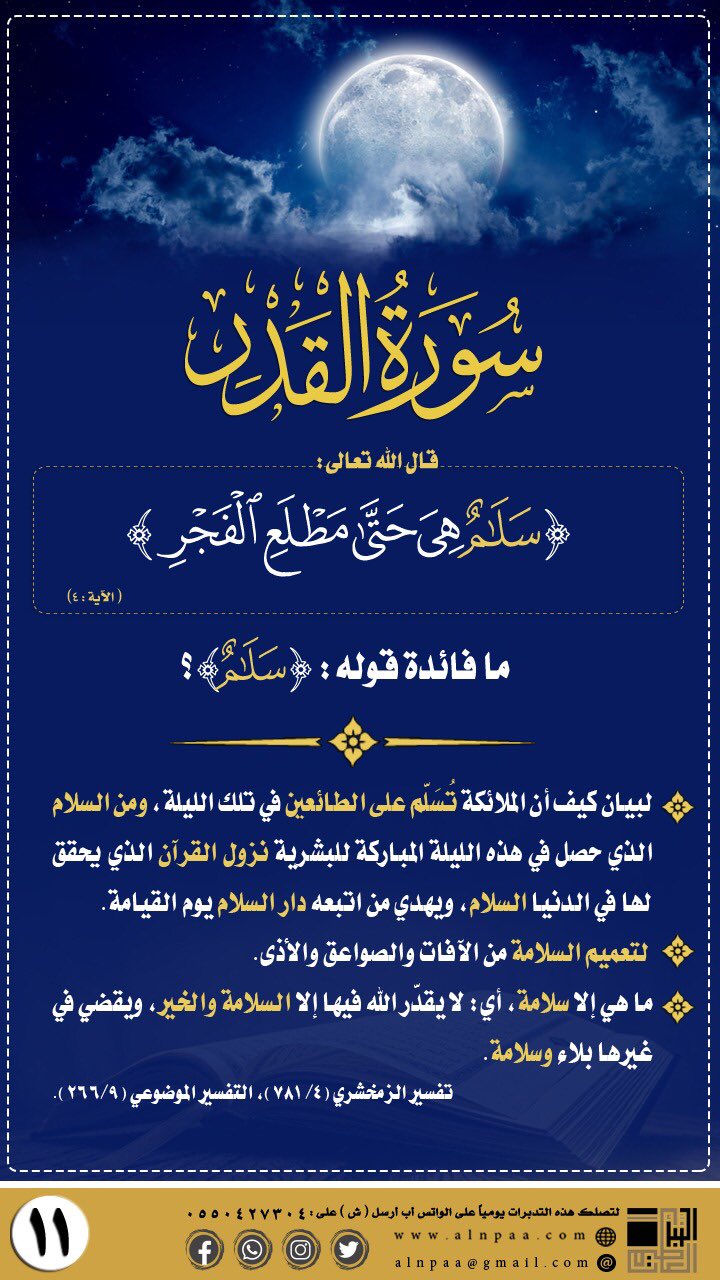 • التساؤل: ﴿سَلَامٌ هِيَ حَتَّى مَطْلَعِ الْفَجْرِ﴾ ما فائدة قوله: (سَلَامٌ)؟
