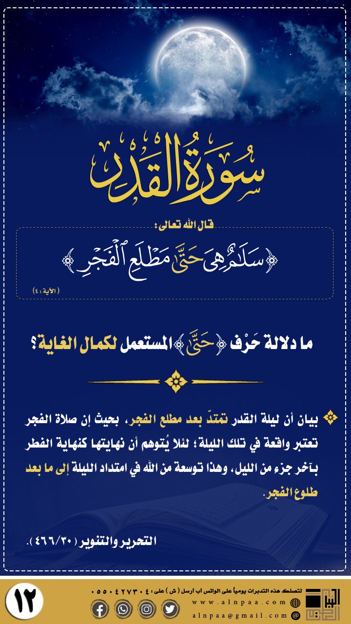 • التساؤل: ﴿سَلَامٌ هِيَ حَتَّى مَطْلَعِ الْفَجْرِ﴾ ما دلالة حَرْف (حَتَّى) المستعمل لكمال الغاية؟