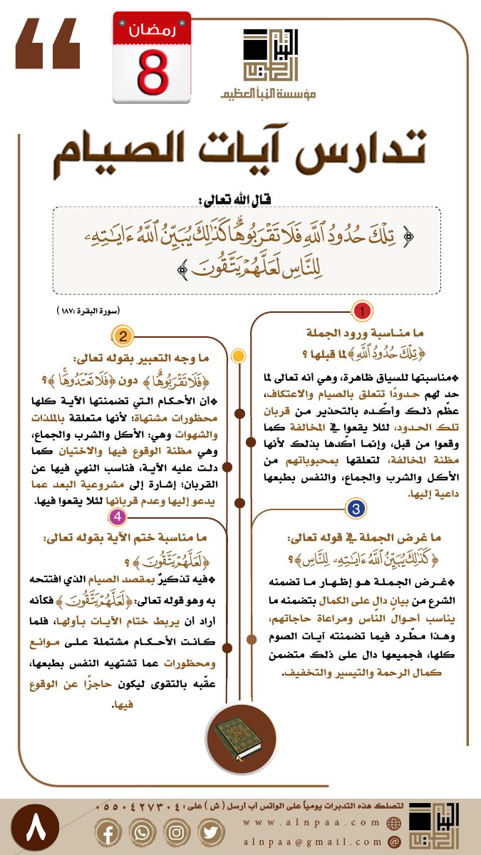 • إجابة التساؤل: مناسبتها للسياق ظاهرة، وهي أنه تعالى لما حد لهم حدودًا تتعلق بالصيام والاعتكاف عظم ذلك وأكّده بالتحذير من قربان ت... المزيد
