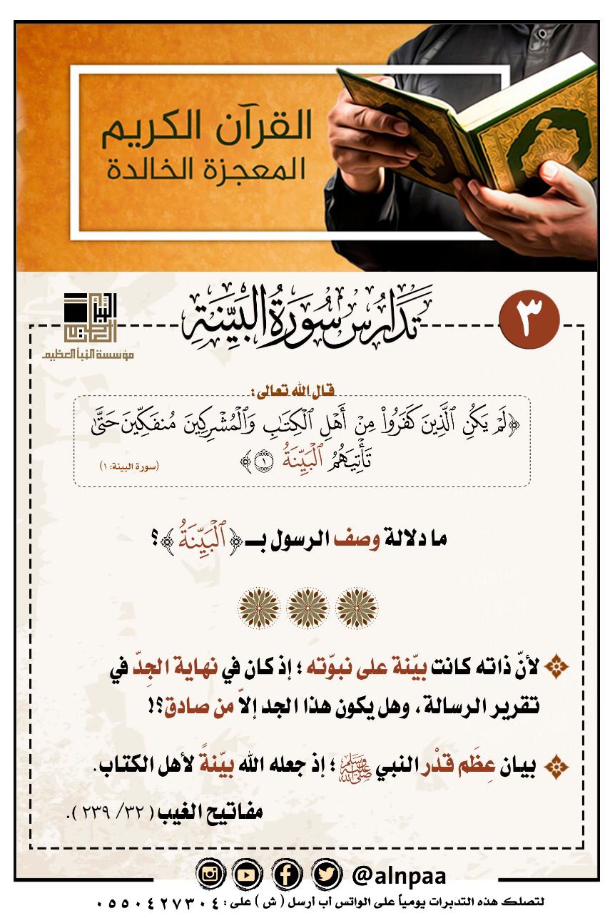 لَمْ يَكُنِ الَّذِينَ كَفَرُوا مِنْ أَهْلِ الْكِتَابِ وَالْمُشْرِكِينَ مُنفَكِينَ حَتَّى تَأْتِيَهُمُ الْبَيِّنَةُ )