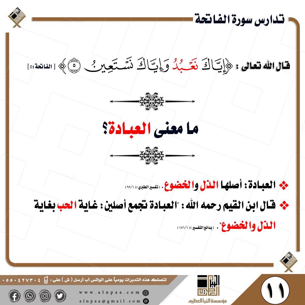 • التساؤل: قال تعالى: ﴿إِيَّاكَ نَعْبُدُ وَإِيَّاكَ نَسْتَعِينُ﴾ ما معنى العبادة؟