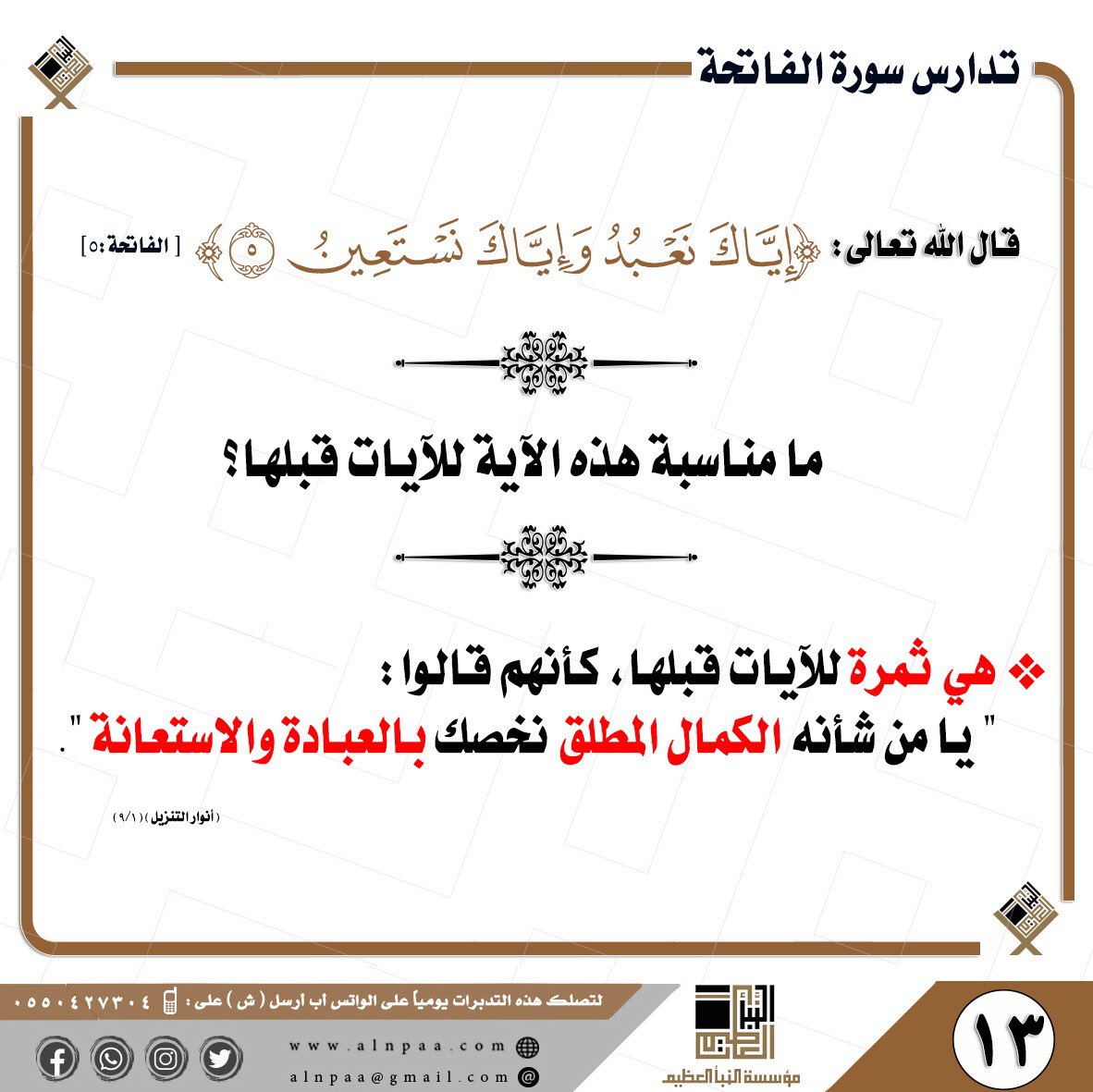 • التساؤل: قال تعالى: ﴿إِيَّاكَ نَعْبُدُ وَإِيَّاكَ نَسْتَعِينُ﴾ ما مناسبة هذه الآية للآيات قبلها؟