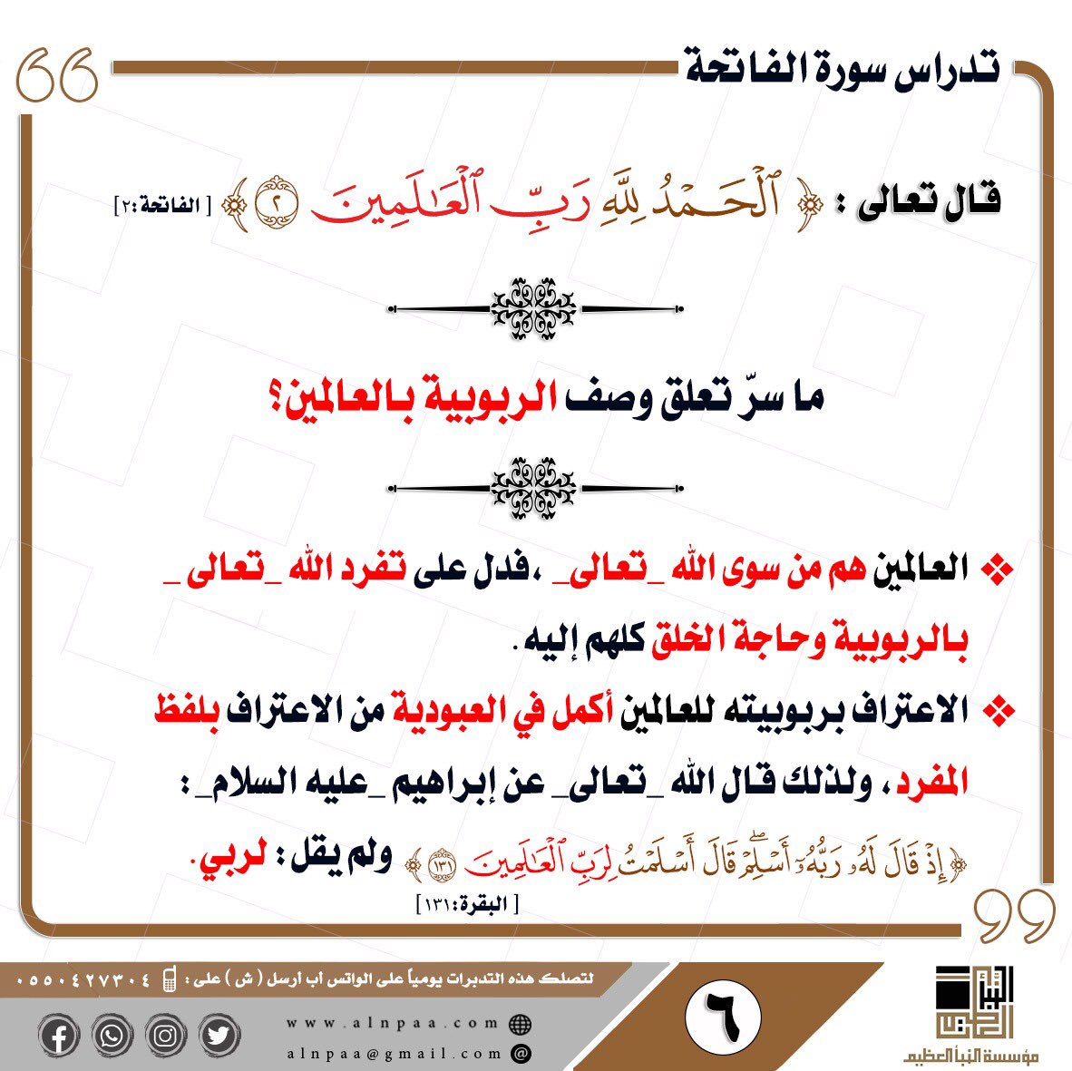 • التساؤل: قال تعالى: ﴿الْحَمْدُ لِلَّهِ رَبِّ الْعَالَمِينَ﴾ ما سرّ الافتتاح بالربوبية؟