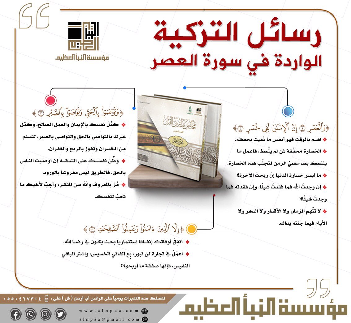 رسائل التزكية الواردة في سورة (العصر): ﴿وَالْعَصْرِ • إِنَّ الْإِنسَانَ لَفِي خُسْرٍ﴾: