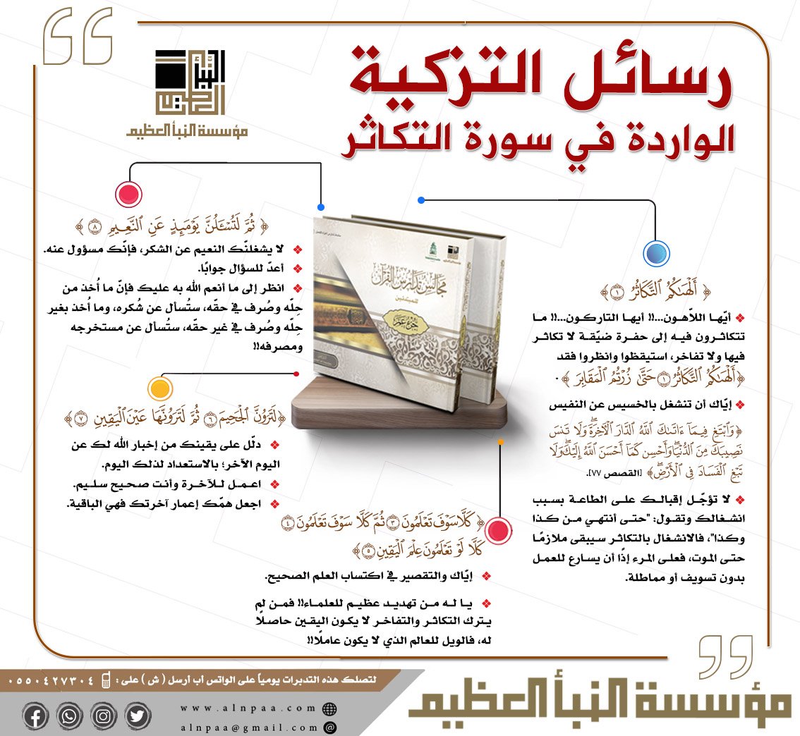 رسائل التزكية الواردة في سورة (التكاثر): ﴿لَتَرَوُنَّ الْجَحِيمَ • ثُمَّ لَتَرَوُنَّهَا عَيْنَ الْيَقِينِ﴾: