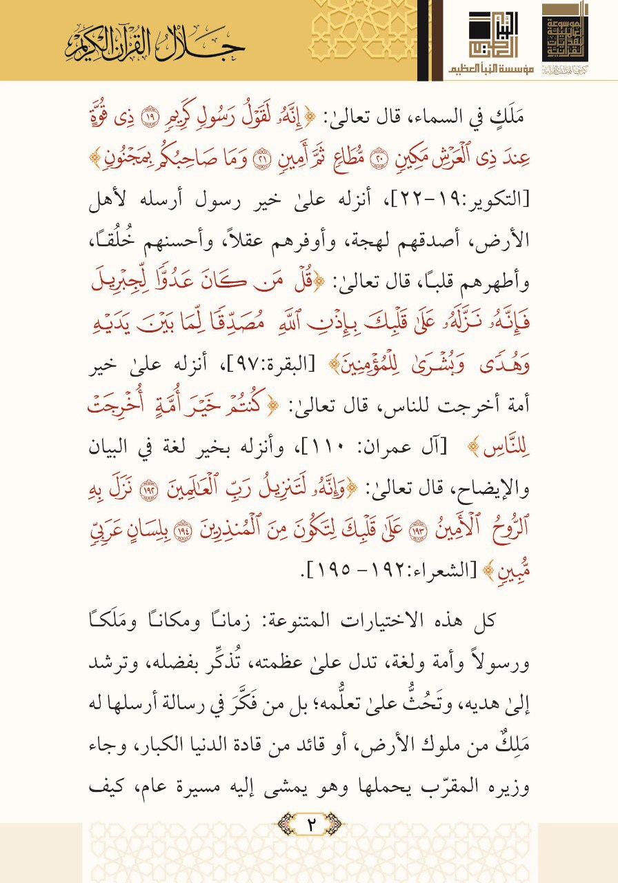 ثم بين ما حظي به من تمام الرعاية، وكمال الصيانة والحفظ في الملأ الأعلى، حتى يتأسى العباد بذلك المحفل الطاهر من الملائكة المقربين؛ بل هم أولى بإكرامه وتبجيله واتباعه، وأحرى حيث أنزله الله تعالى إليهم، ... المزيد